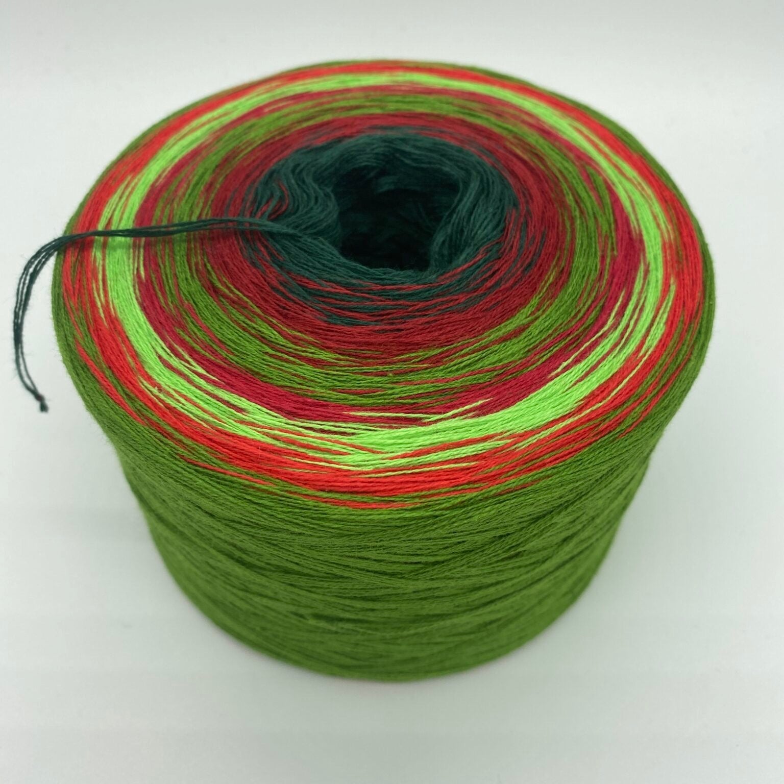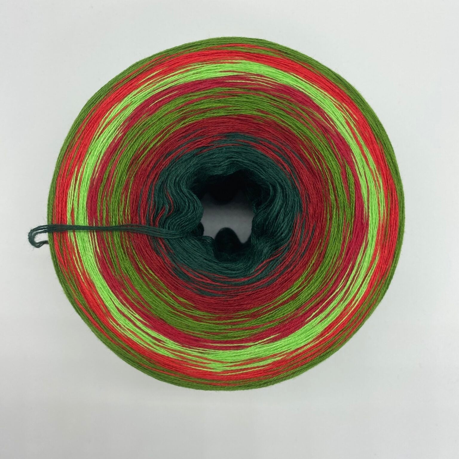Sein lebendiger Verlauf aus Tannengrün, Burgund, Farn, Rot, Apfel, Kirsche und wieder Farn erinnert an festlich geschmückte Wohnzimmer, knisternde Kaminabende und kleine Überraschungen in bunten Söckchen. Diese kräftigen, aber harmonischen Farben verleihen deinem Projekt eine einzigartige Ausstrahlung, die sowohl fröhlich als auch herzerwärmend wirkt.