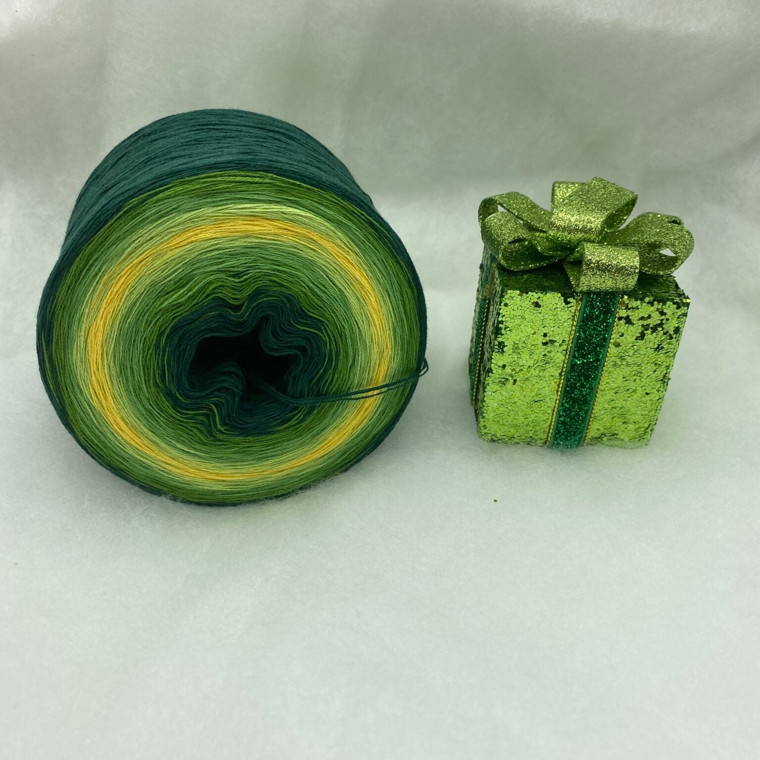 Sein harmonischer Verlauf aus Tannengrün, Farn, Froschgrün, Blattgrün, Gold und zurück über Blattgrün, Froschgrün, Farn bis zu Tannengrün erinnert an glänzende Weihnachtskugeln, festlich geschmückte Bäume und den warmen Glanz goldener Lichter. Diese tiefen, aber strahlenden Farben verleihen deinem Projekt eine einzigartige Ausstrahlung, die sowohl festlich als auch harmonisch wirkt.