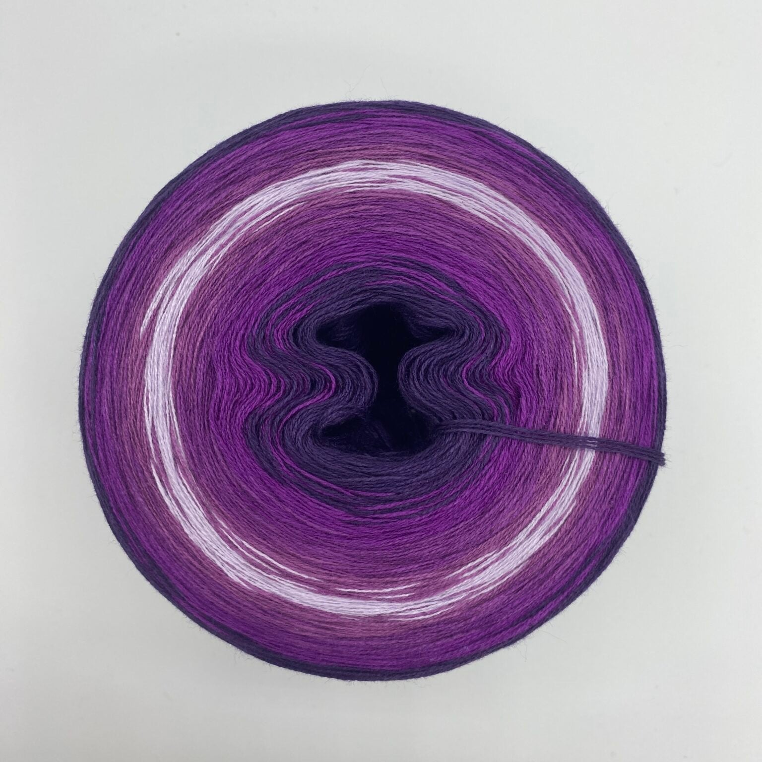 Sein zauberhafter Verlauf aus Lila, Bischoff, Distel, Oleander, Lavendel und zurück über Oleander, Distel, Bischoff bis zu Lila erinnert an den ersten Frost, der auf lila Blumen und silberne Zweige fällt, wenn die Welt in sanftes Licht gehüllt ist. Diese kühlen, aber funkelnden Farben verleihen deinem Projekt eine einzigartige Ausstrahlung, die sowohl edel als auch träumerisch wirkt.