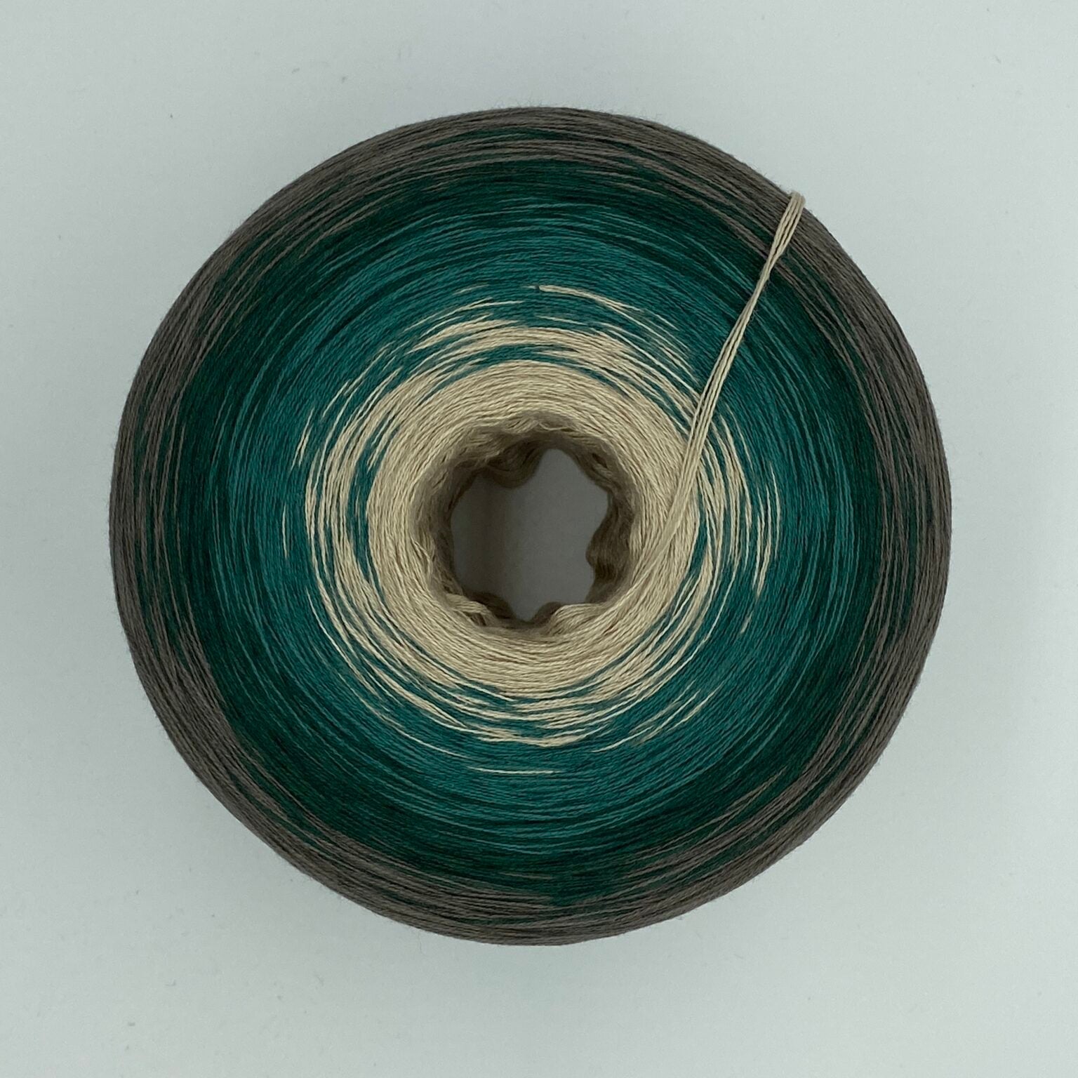 Der Bobbel „Waldlichtung“ verläuft harmonisch von Alabaster über Smaragd und Tannengrün bis hin zu Taupe – wie Licht, das durch die Baumwipfel fällt, und Schatten, die sich auf Waldboden legen. Erdverbunden, beruhigend und wunderbar ausbalanciert.