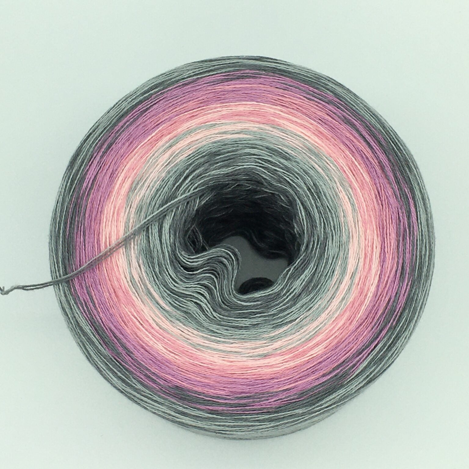Die parallel liegenden Fäden (nicht verzwirnt) sorgen für ein gleichmäßiges Maschenbild. Farbwechsel erfolgen durch kleine, unauffällige Knoten – für sanfte Übergänge und ein wunderschönes Farbspiel.