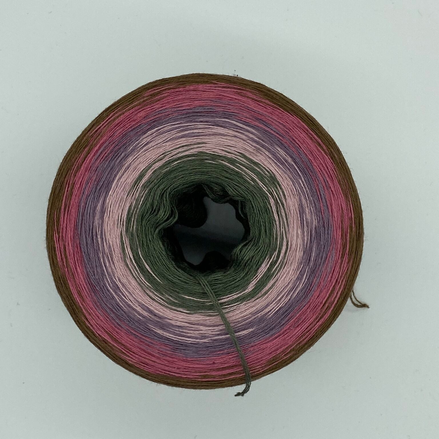 Der Bobbel „Veilchen im Moos“ verläuft in einem sanften Farbverlauf von Khaki, Flieder, Violett, Phlox und Nuss – wie die leisen, aber eindrucksvollen Farben eines Veilchens, das aus moosigem Waldboden hervorblüht. Diese zarten, aber natürlichen Farben verleihen deinem Projekt eine einzigartige Ausstrahlung, die sowohl weich als auch geheimnisvoll wirkt.