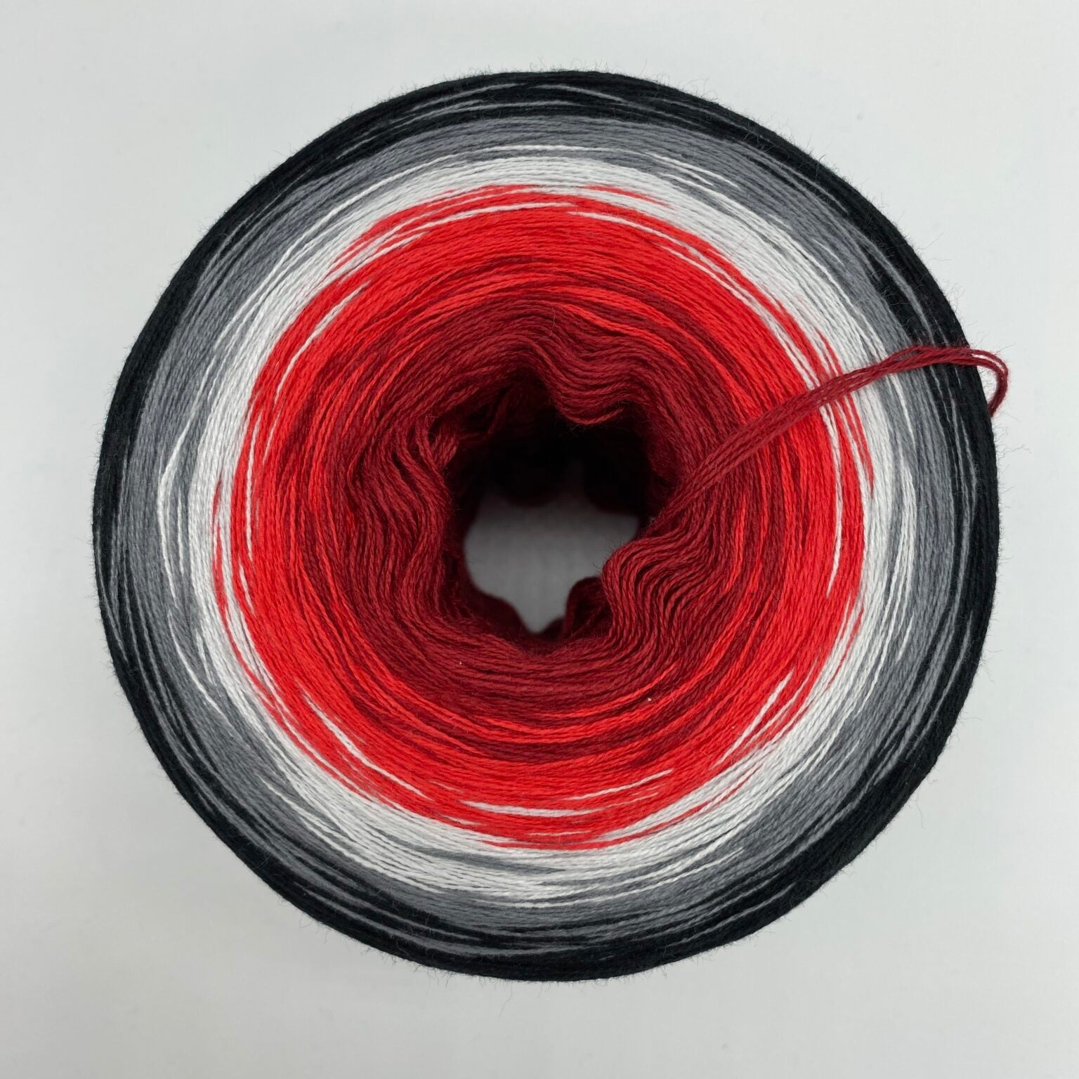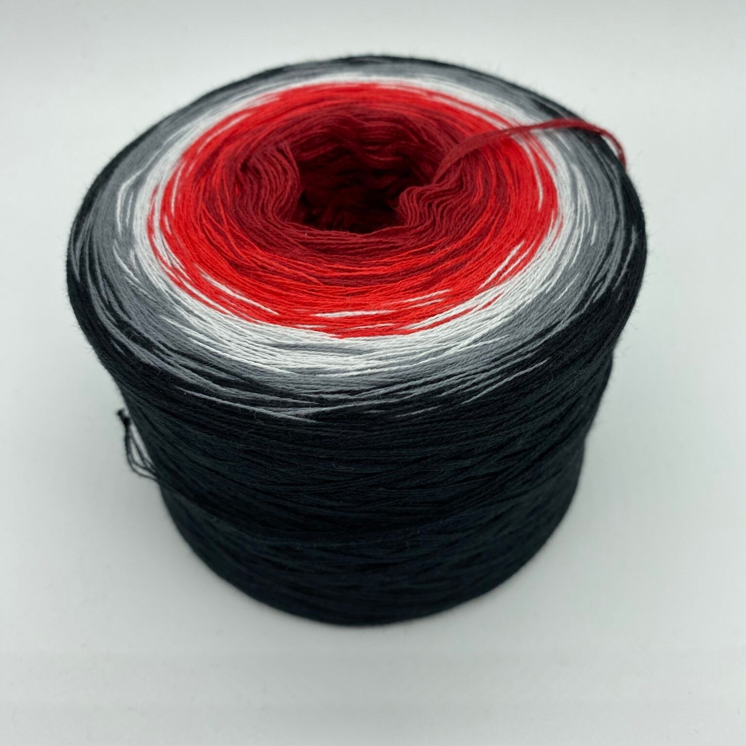 Der Bobbel „Magma“ verläuft in einem kraftvollen Farbverlauf von Burgund, Kirsche, Hellgrau, Mittelgrau und endet in Tiefschwarz – wie die heiße, brodelnde Lava, die aus den Tiefen der Erde aufsteigt. Diese tiefen, intensiven Töne verleihen deinem Projekt eine dramatische und starke Ausstrahlung, die an die unbändige Kraft der Natur erinnert.
