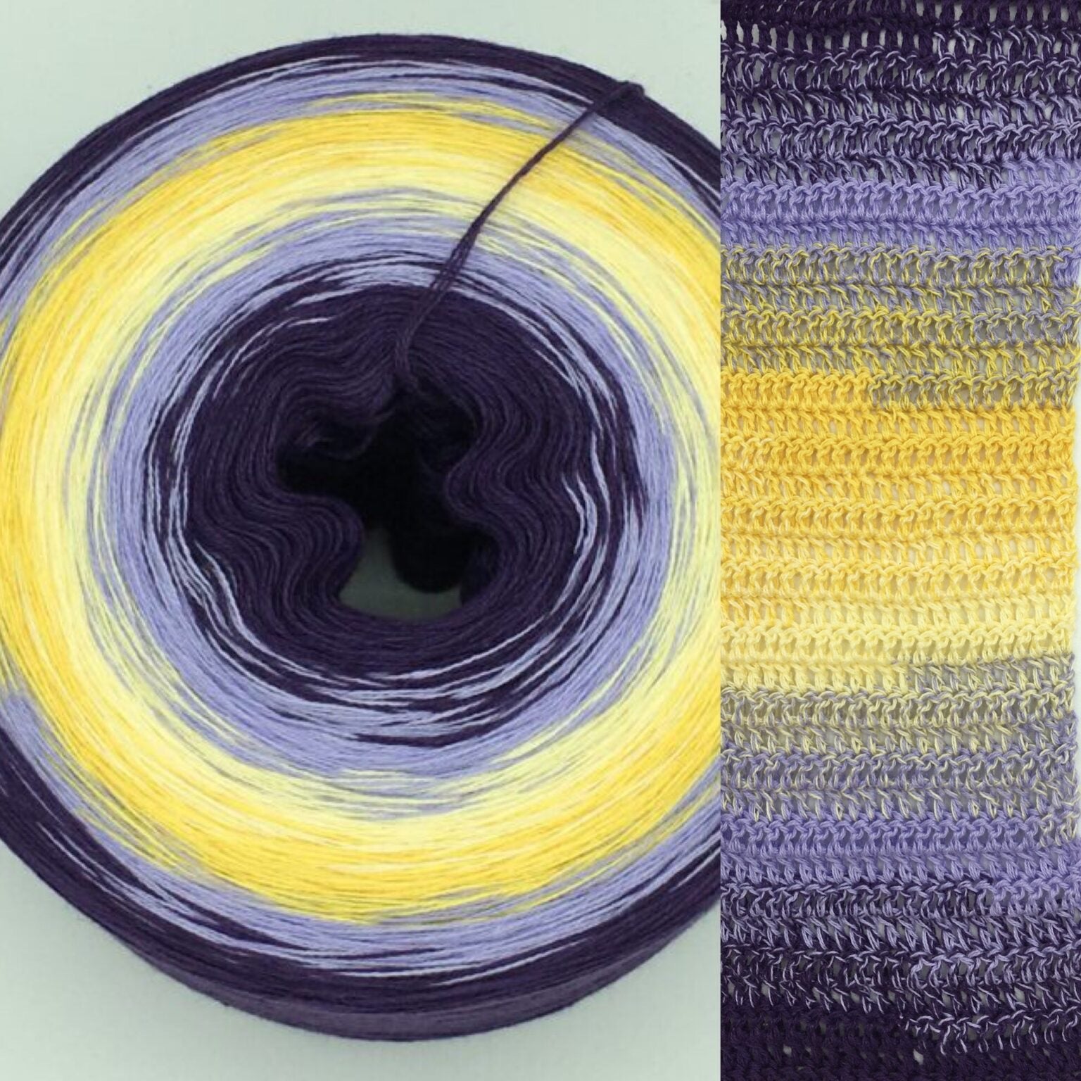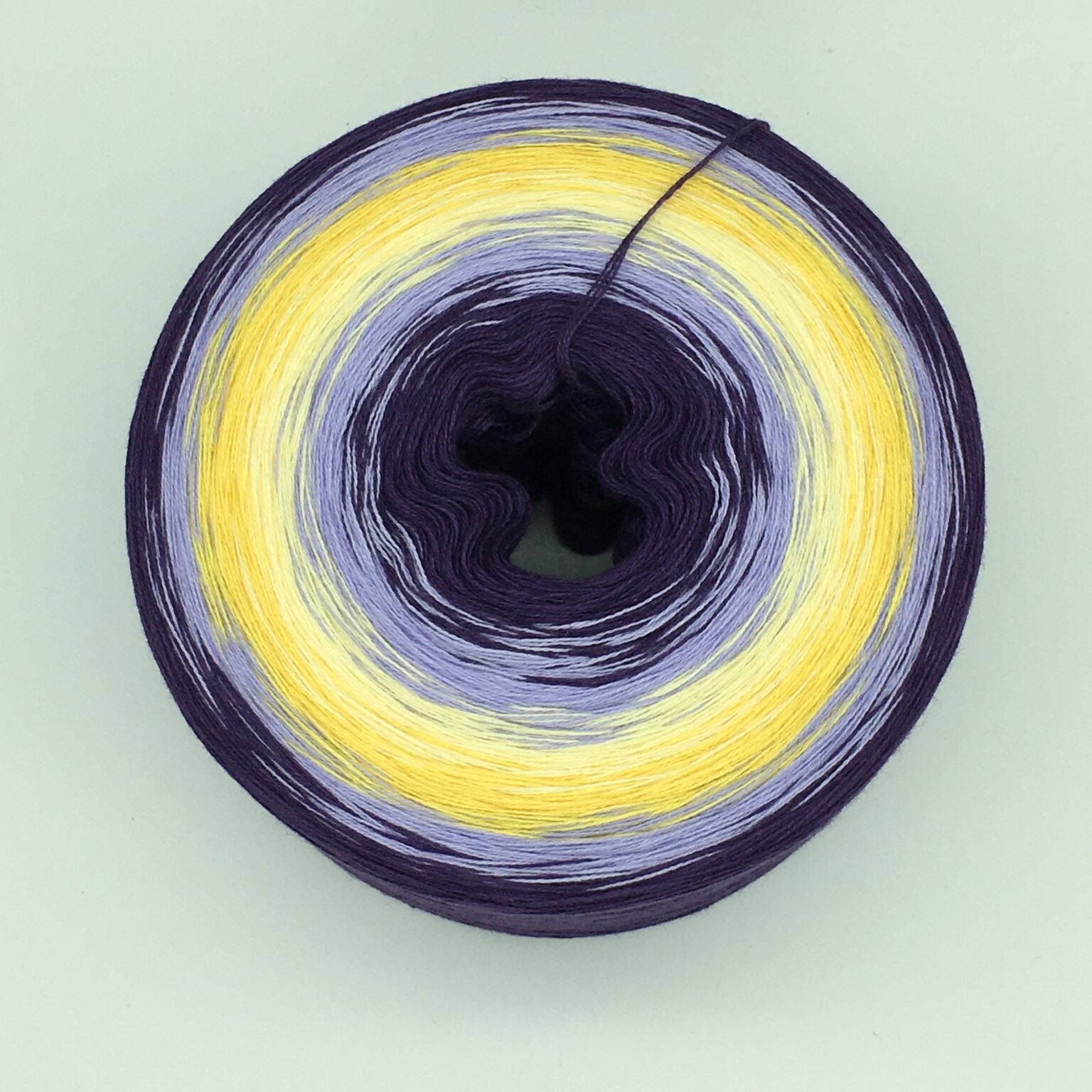 Der Bobbel „Lilie“ verläuft in einem edlen Farbverlauf von Aubergine, Krokus, Vanille, Gold, Krokus und Aubergine– wie die sanften, aber kräftigen Farbtöne einer Lilie, die in voller Blüte erstrahlt. Diese harmonische Kombination von warmen und kühlen Tönen verleiht deinem Projekt eine elegante, luxuriöse Ausstrahlung, die an die zarte Schönheit einer Lilie erinnert.