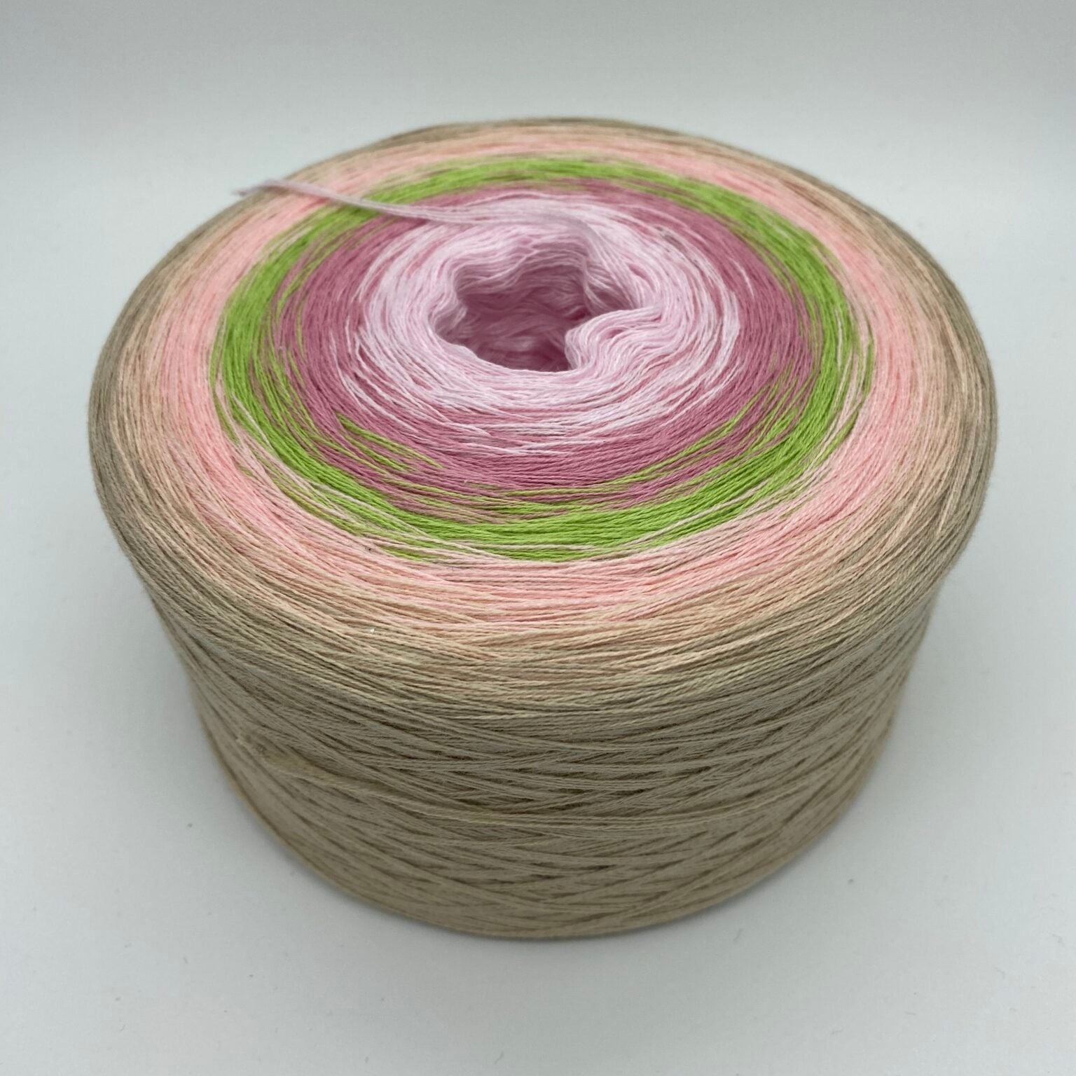 Der Bobbel „Frühlingserwachen“ entfaltet sich in einem sanften Verlauf von Baby Rosa, Anemone, Blattgrün, Rosé, Peach und endet in einem zarten Alabaster – wie die ersten Blumen, die nach einem langen Winter zu blühen beginnen. Frisch, lebendig und voller Hoffnung.