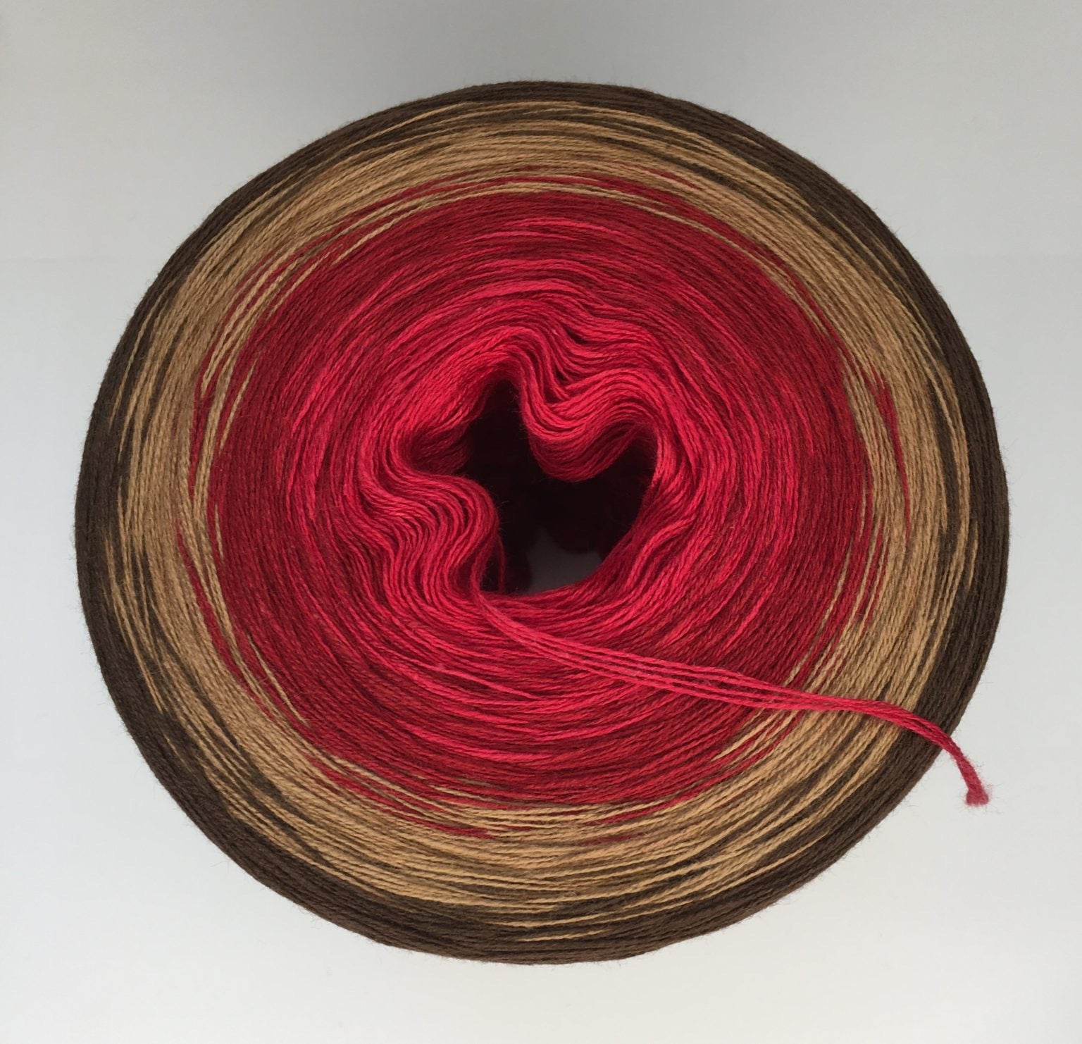 Der Bobbel „Feuer & Erde“ fließt intensiv von Rot über Burgund und Mocca bis hin zu Braun – ein erdiger, leidenschaftlicher Farbverlauf, der die Hitze des Feuers mit der Ruhe der Erde vereint. Ausdrucksstark, warm und voller Energie.