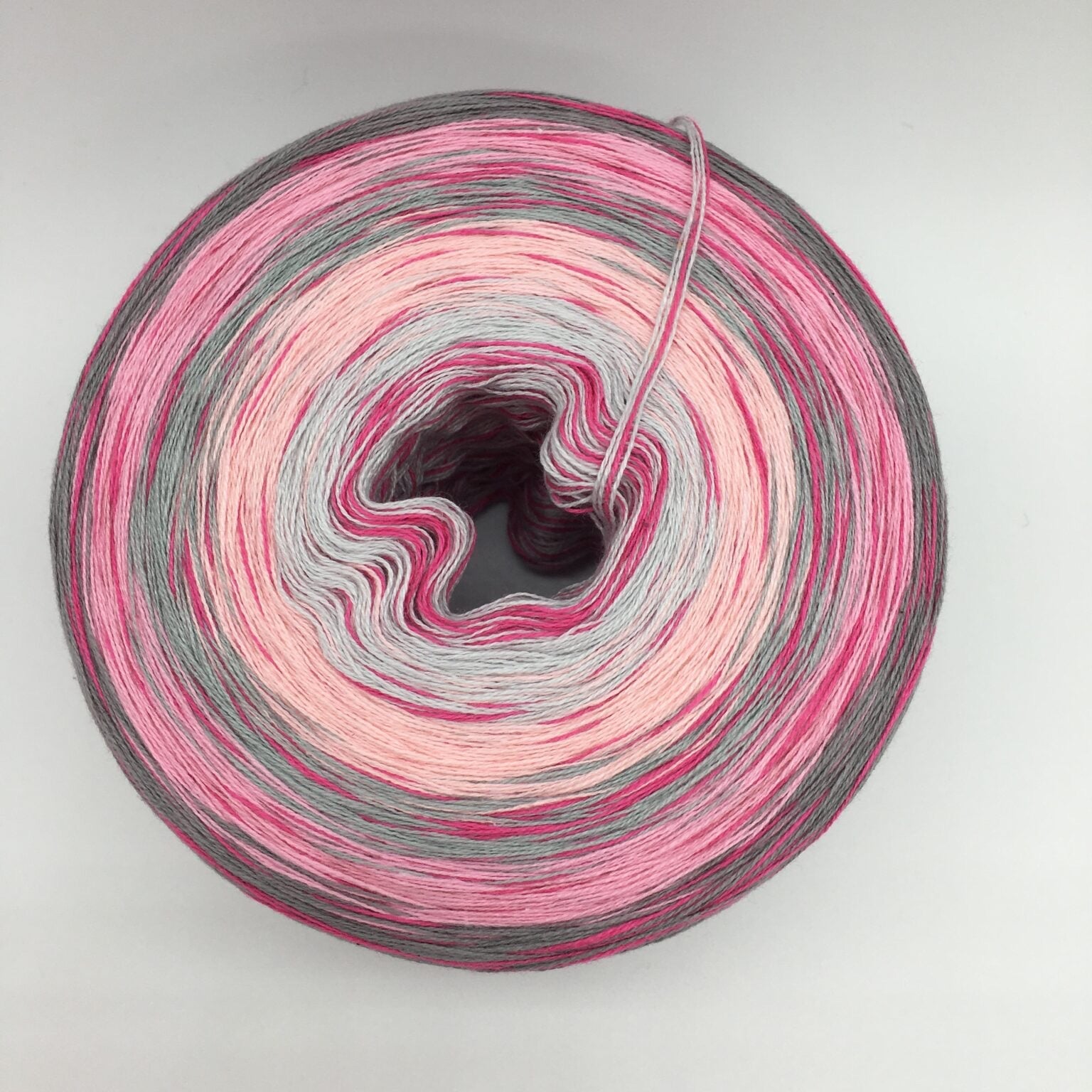 Der Bobbel „Flamingo Sea Light“ aus der Serie „Sea“ verläuft in einem sanften Farbverlauf von Hellgrau, Rosé, Stone, Rosa und Zinn, durchzogen von einem durchgehenden Faden in Fuchsia – wie ein Flamingo im Abendlicht am Wasser, leichtfüßig, verspielt und wunderschön ausbalanciert. Diese zarten, aber ausdrucksstarken Farben verleihen deinem Projekt eine einzigartige Ausstrahlung, die sowohl weich als auch lebendig wirkt.