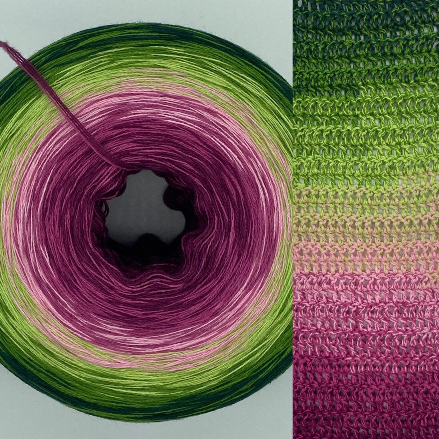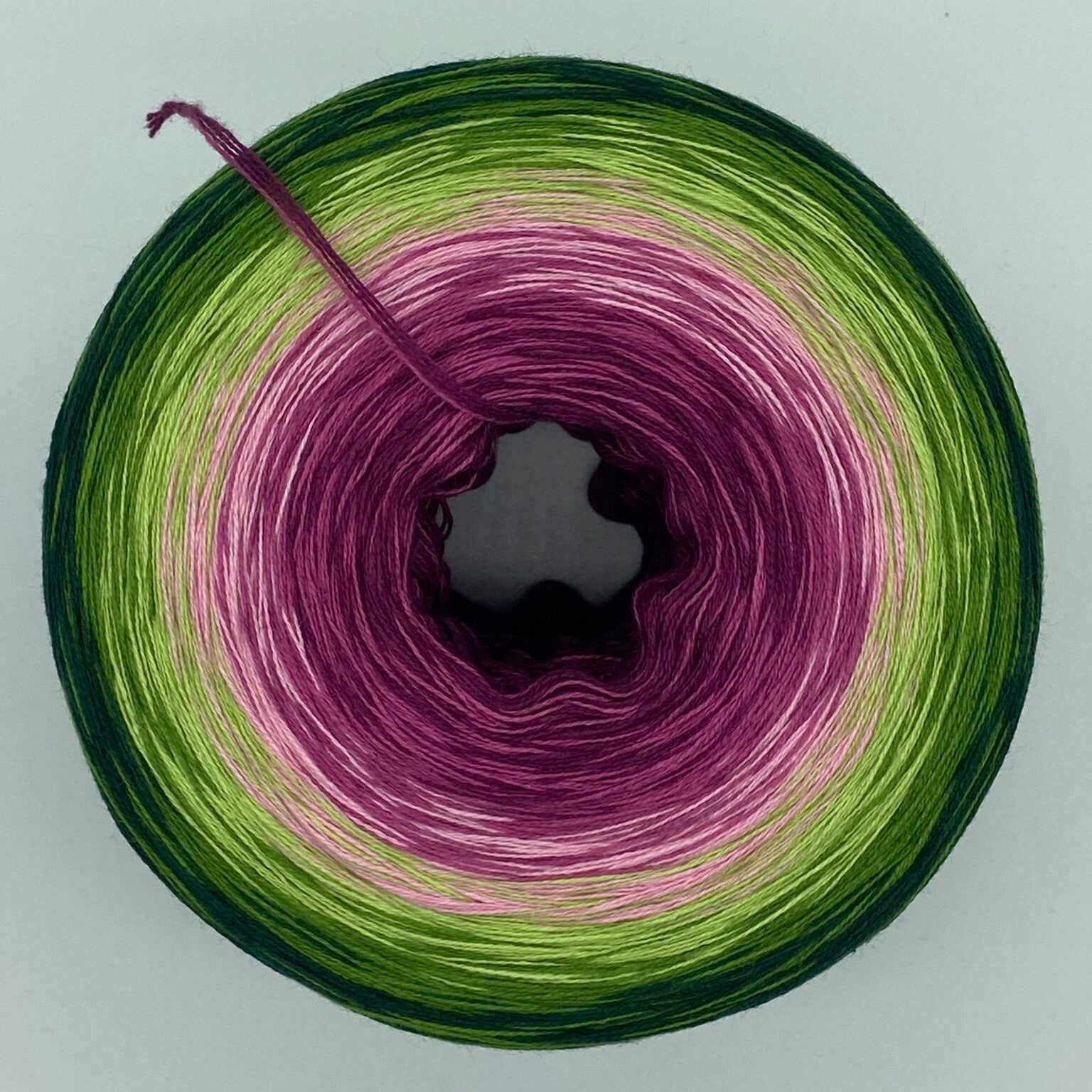 Der Bobbel „Distel“ verläuft in einem sanften Farbverlauf von Brombeere, Himbeere, Rosa, Blattgrün, Farn und Tannengrün – wie die kräftigen Farben einer Distelblüte, die sich stolz inmitten der Natur erhebt. Diese lebendigen, aber natürlichen Farben verleihen deinem Projekt eine einzigartige Ausstrahlung, die sowohl sanft als auch kraftvoll wirkt.