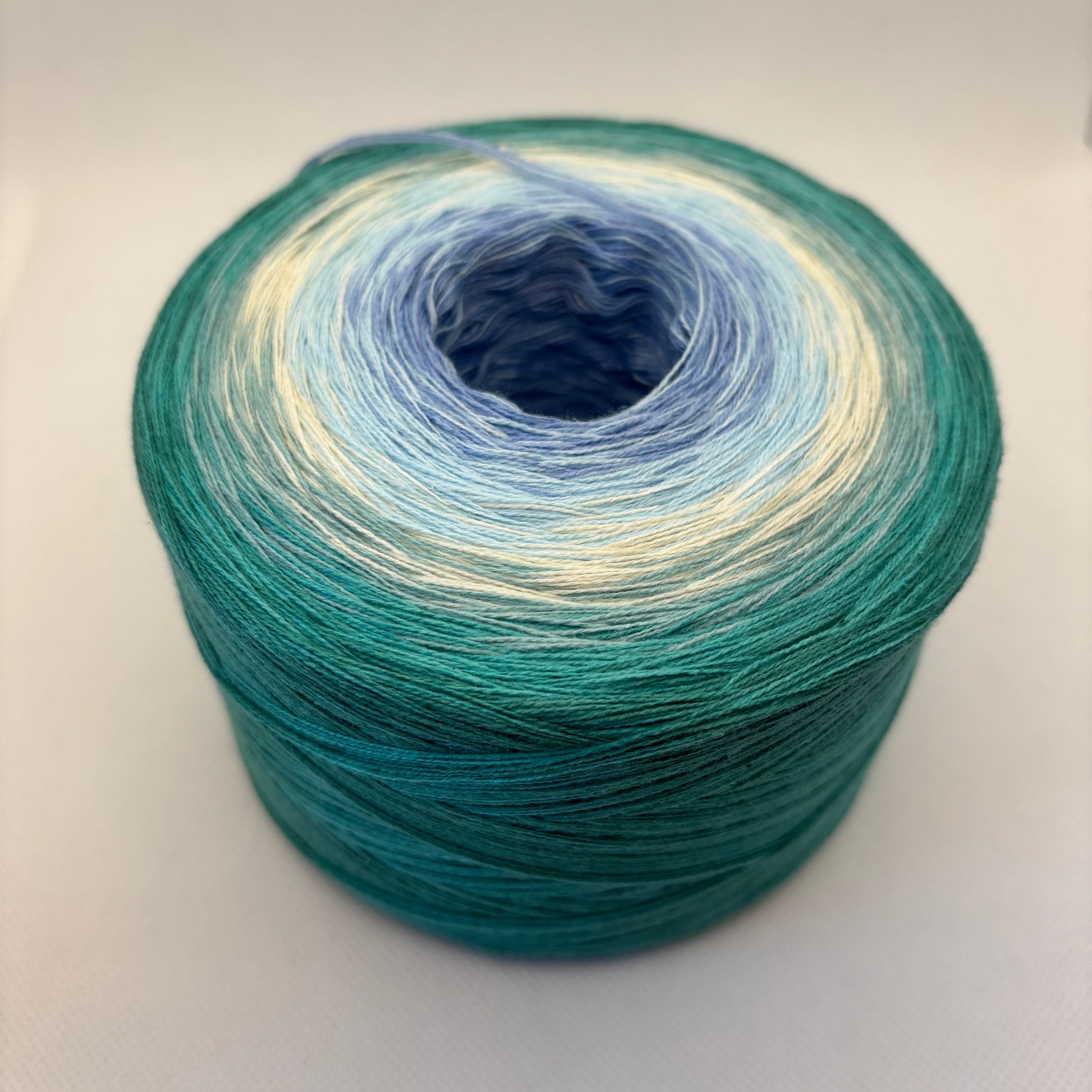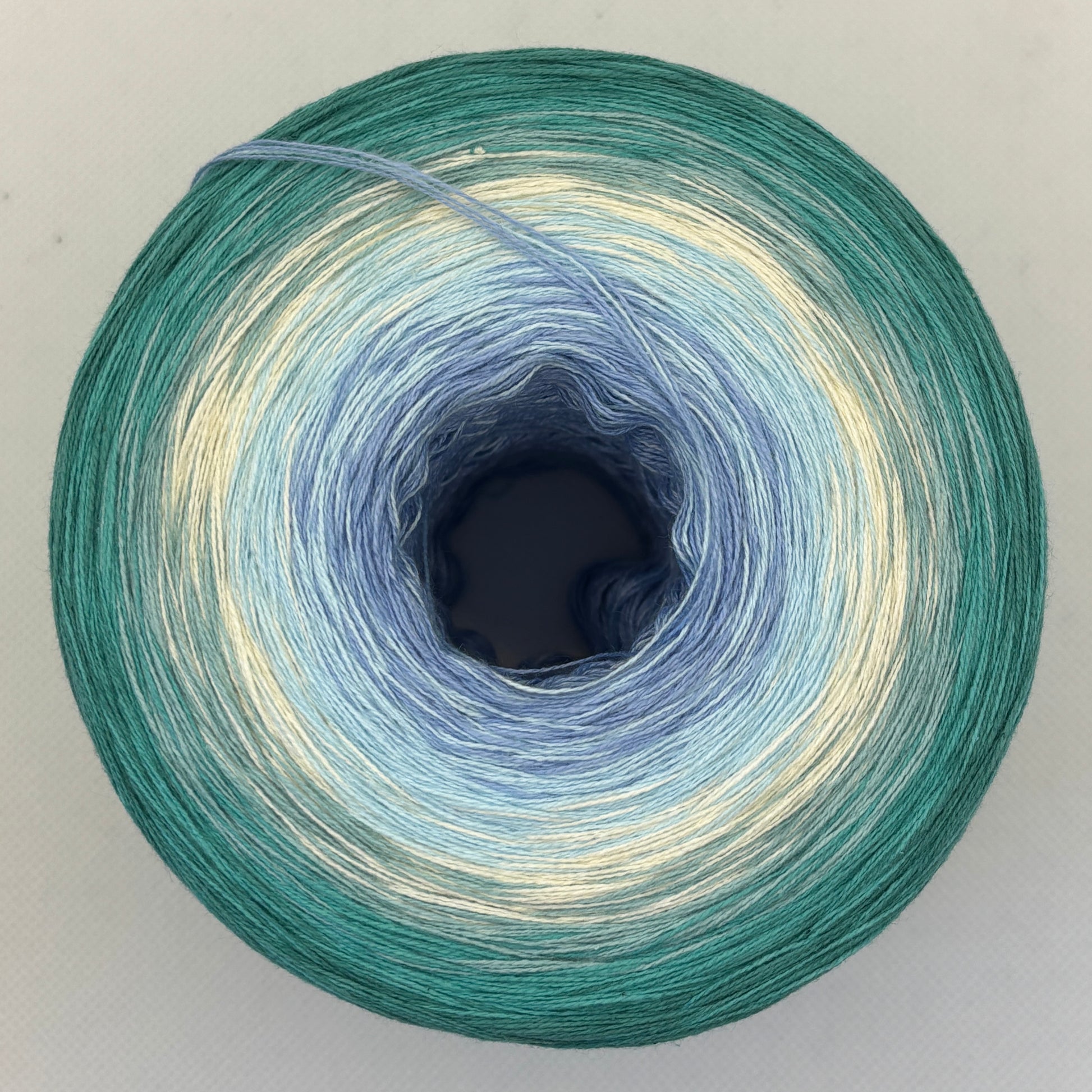 Der Bobbel „Tropischer Wasserfall“ verläuft sanft von Cloud, Libelle, Creme, Jade, Opal bis Oceangrün – ein frischer, harmonischer Farbfluss, der an türkisblaues Wasser, Sonne und tropische Leichtigkeit erinnert.