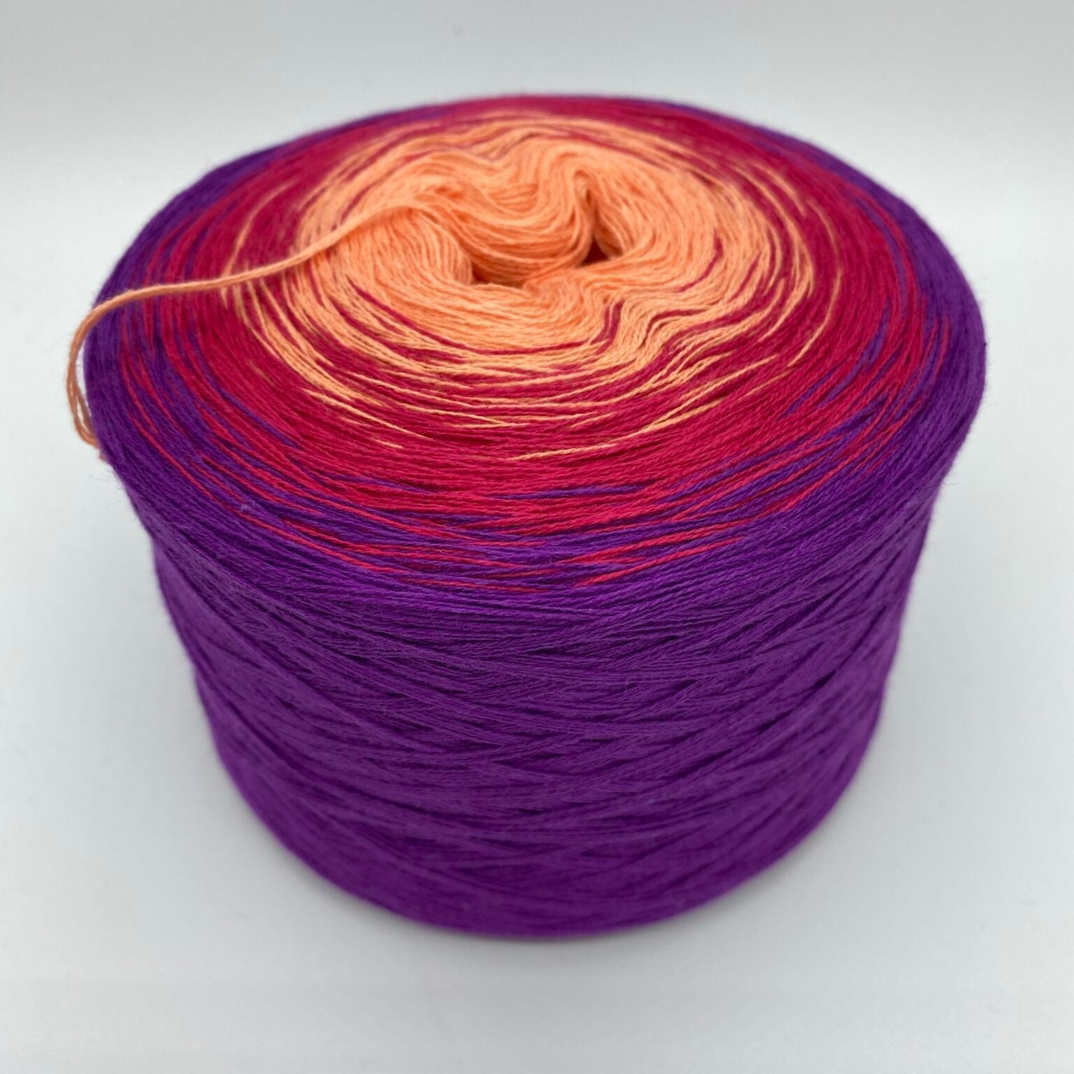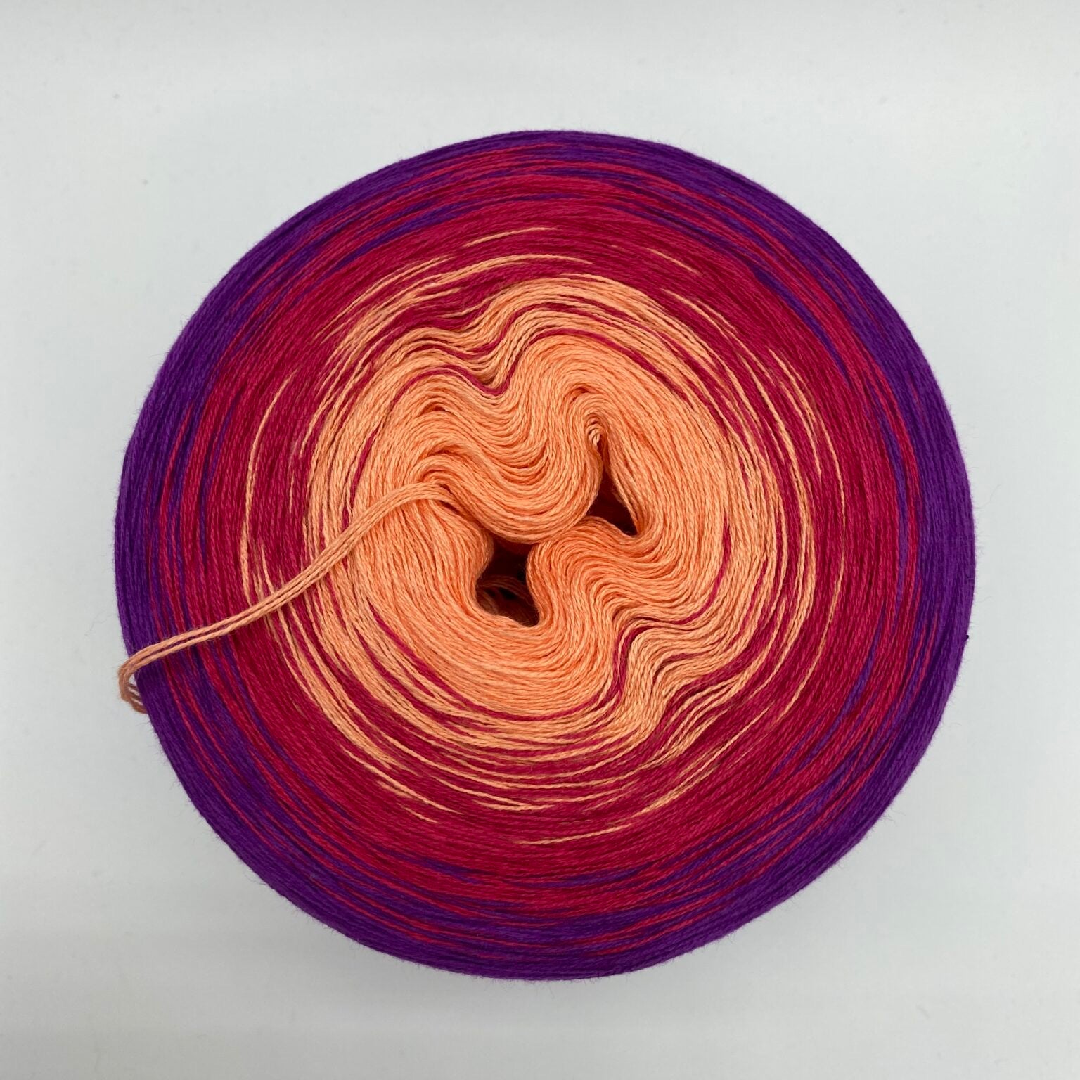 Die parallel liegenden Fäden (nicht verzwirnt) sorgen für ein gleichmäßiges Maschenbild. Farbwechsel erfolgen durch kleine, unauffällige Knoten – für sanfte Übergänge und ein wunderschönes Farbspiel.