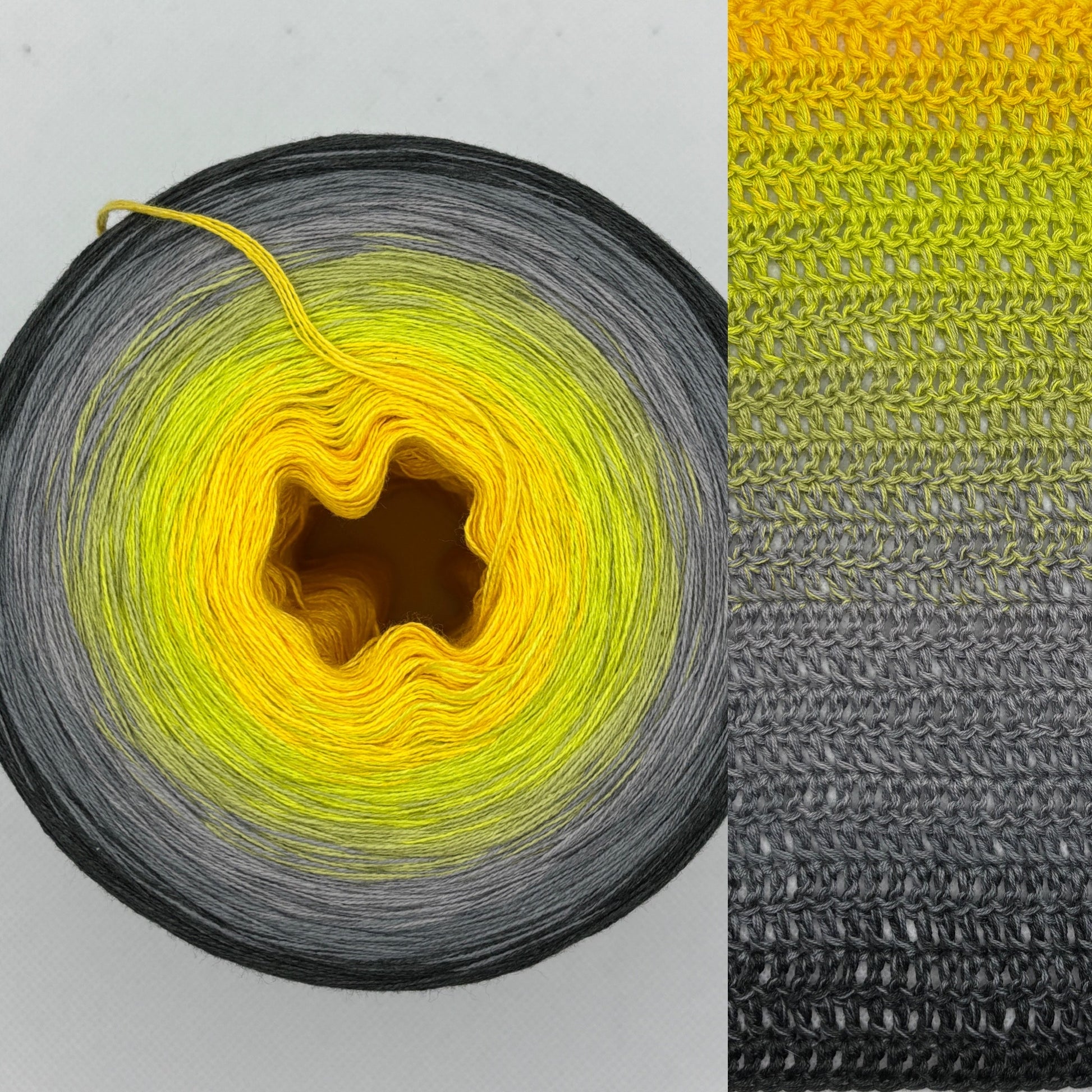 Die parallel liegenden Fäden (nicht verzwirnt) sorgen für ein gleichmäßiges Maschenbild. Farbwechsel erfolgen durch kleine, unauffällige Knoten – für sanfte Übergänge und ein wunderschönes Farbspiel.