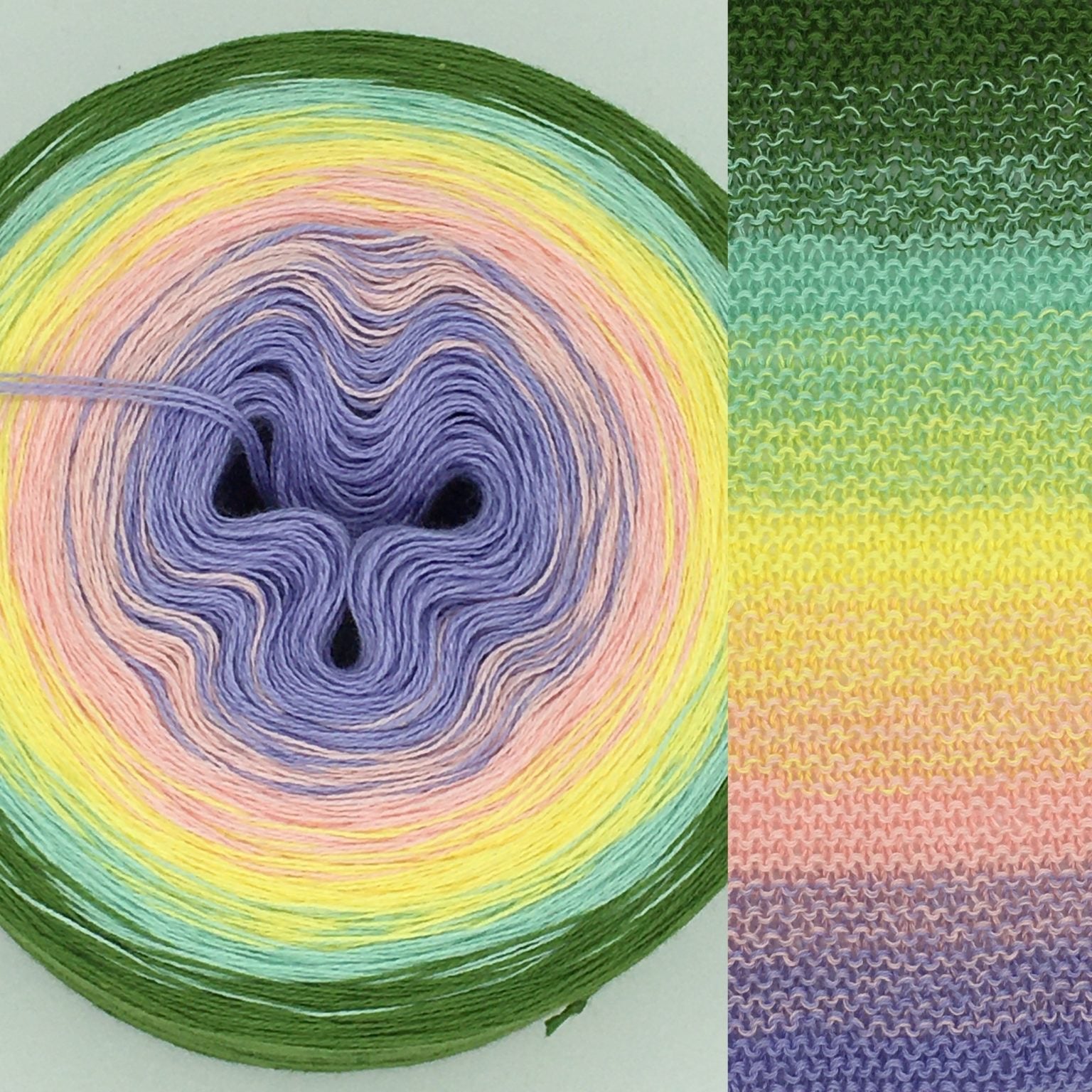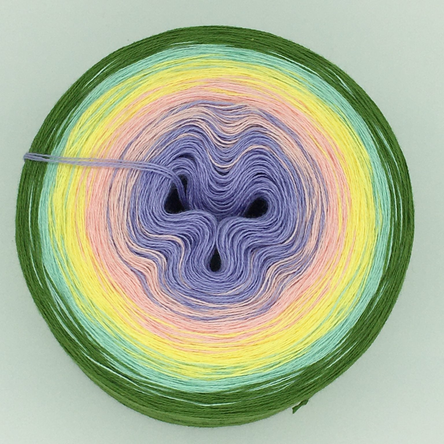 Der Bobbel „Einhörnchen” verläuft von Krokus über Rosé, Jalousie, Pistazie und endet in einem frischen Farn – wie die Farben eines fröhlichen Frühlingstags, an dem die ersten Blumen sprießen und die Luft von Magie erfüllt ist. Zart, lebendig und absolut bezaubernd.