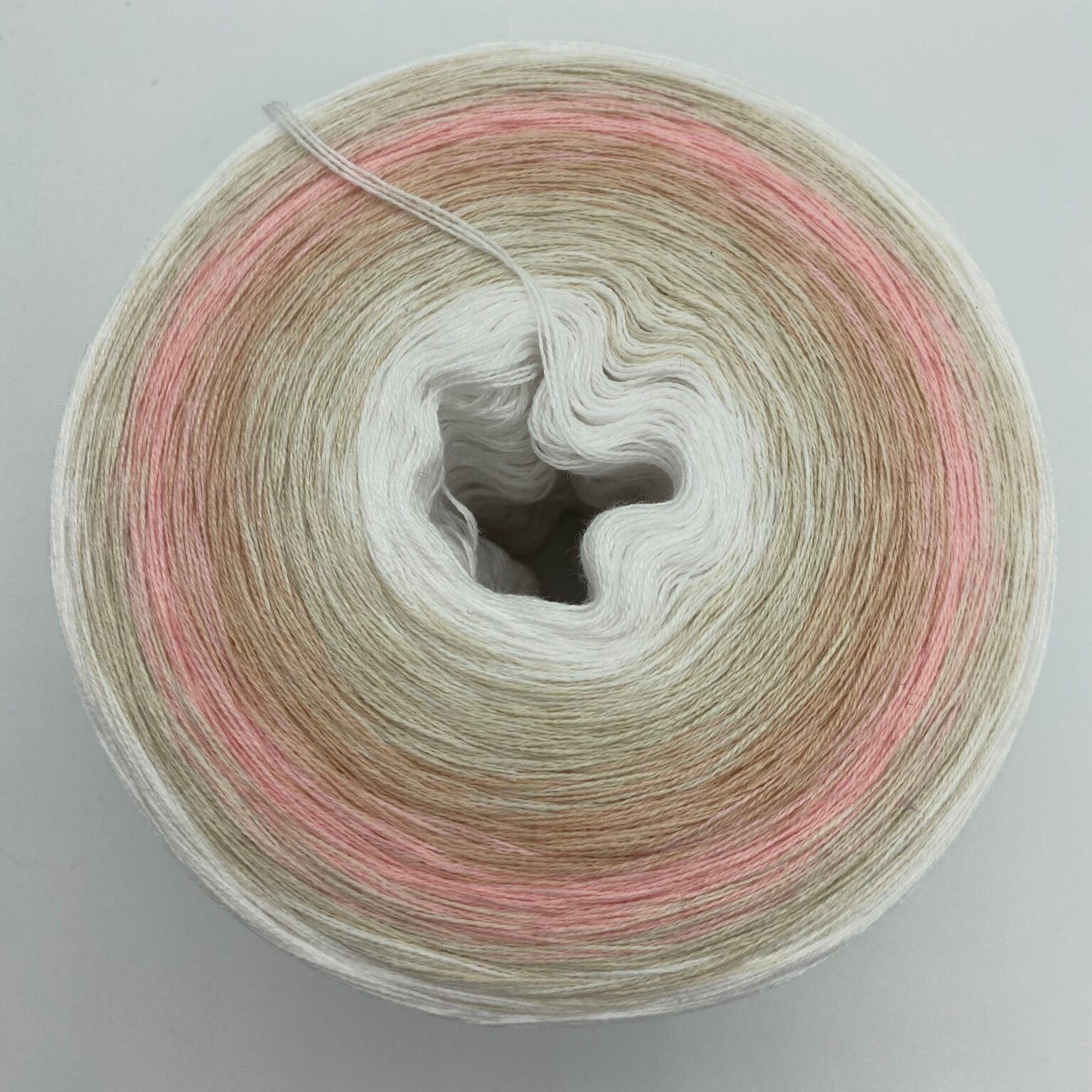 Der Bobbel „Pearly Shell“ verläuft in einem sanften Farbverlauf von Weiß, Muschel, Peach, Rosé, Muschel und endet in Weiß – wie die zarte Perle in ihrer Muschel, die sanft im Licht glänzt. Diese eleganten, warmen Farben verleihen deinem Projekt eine weiche, verträumte Ausstrahlung, die an den ruhigen Glanz des Meeres erinnert.