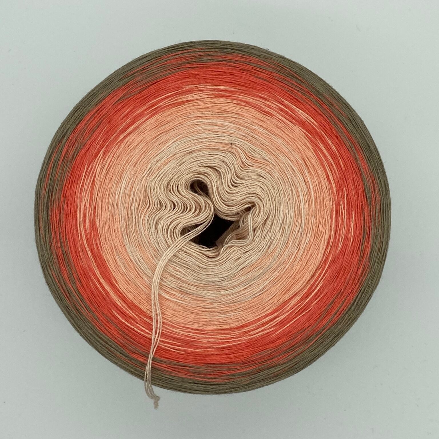 Der Bobbel „Savannenlicht“ verläuft weich von Peach über Quarz und Lachs bis hin zu Schlamm – wie das goldene Licht der untergehenden Sonne über trockener Erde. Natürlich, ruhig und voller Tiefe – ein Garn wie ein Sonnenstrahl in warmem Wind.