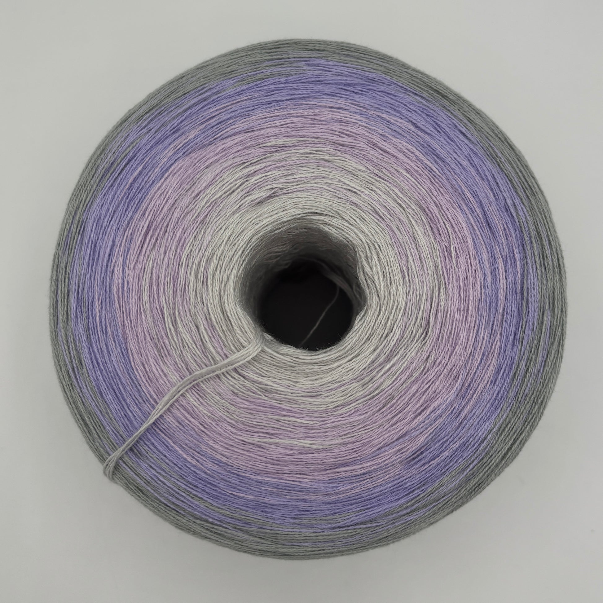 Nebelveilchen ist ein ruhiger Bobbel mit sanfter Tiefe. Der Verlauf beginnt in Hellgrau, klar und zurückhaltend wie Morgennebel. Lavendel bringt Weichheit, Krokus einen feinen Akzent. Stone rundet alles erdend und harmonisch ab.