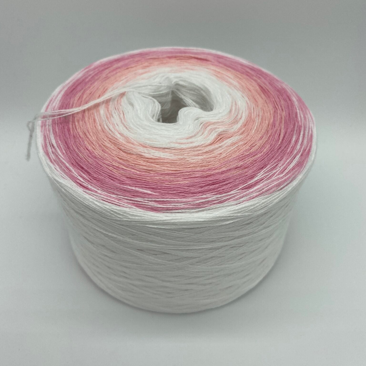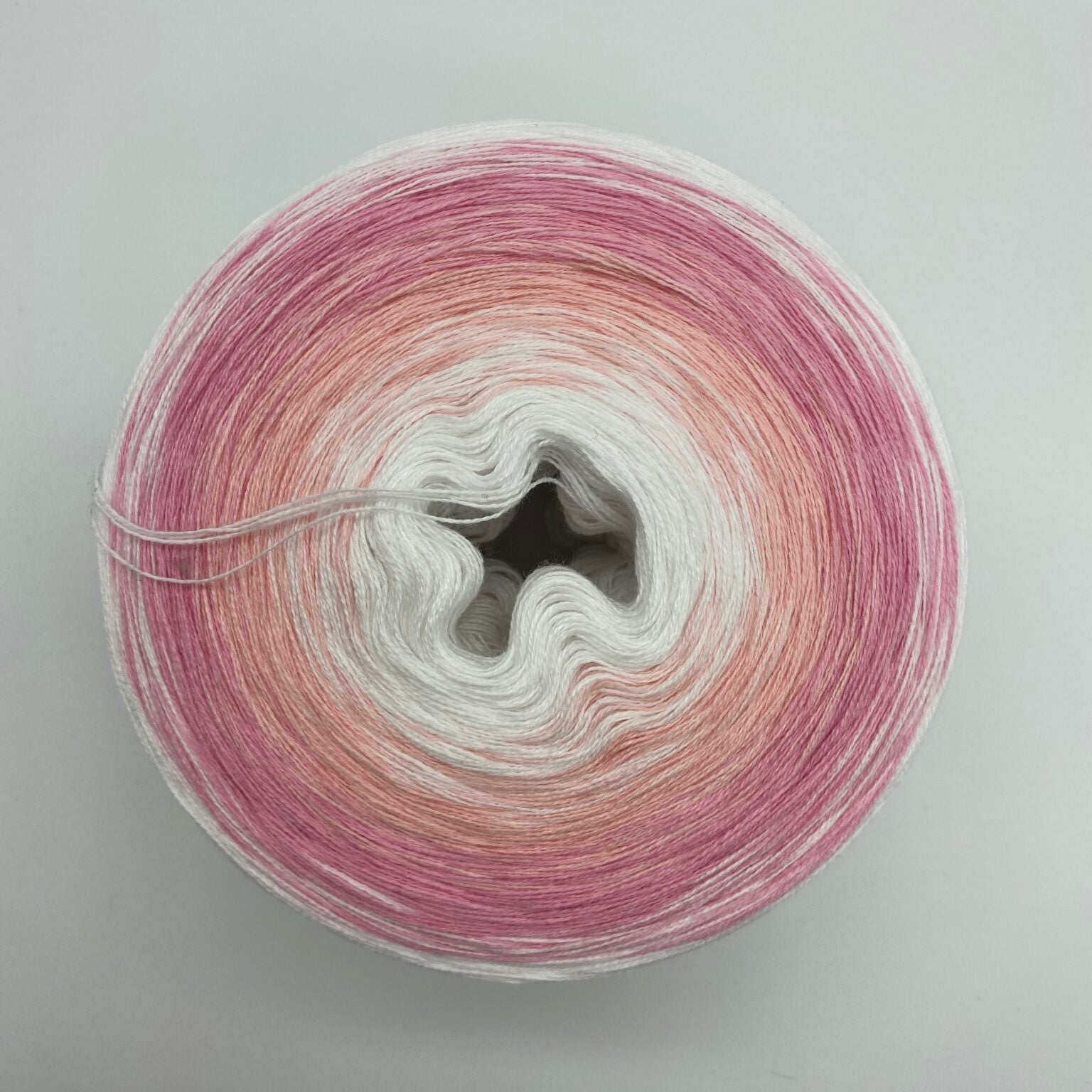 Der Bobbel „Rosenglanz“ verläuft in einem sanften Farbverlauf von Weiß, Rosé, Rosa und endet wieder in Weiß – wie das zarte Strahlen einer rosafarbenen Rose im Morgenlicht. Diese eleganten, weichen Töne verleihen deinem Projekt eine romantische und charmante Ausstrahlung, die an den Glanz eines zarten Rosenglücks erinnert.
