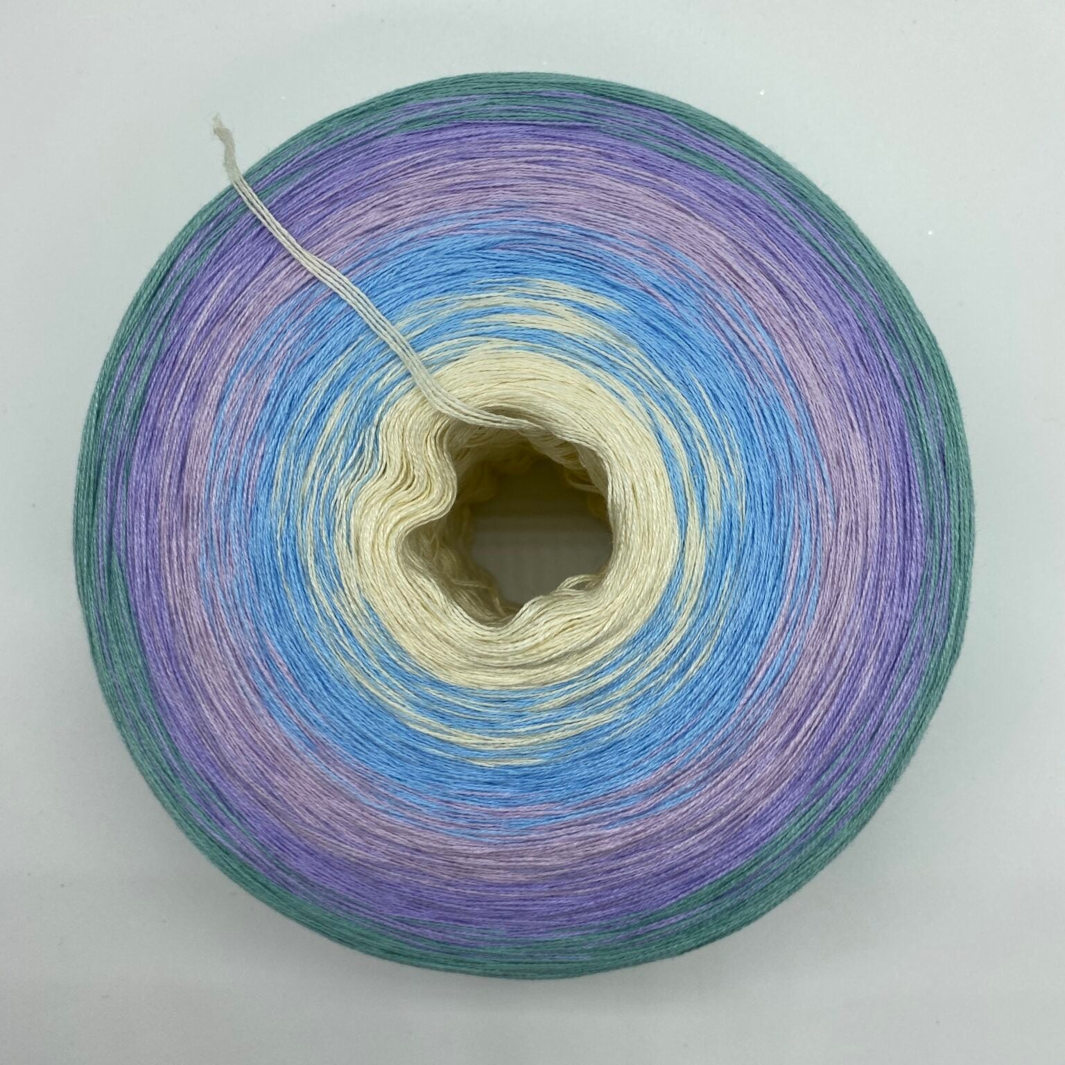 Der Bobbel „Winterprinzessin“ beginnt edel in Creme, fließt über Aqua, Lavendel und Krokus bis hin zu einem tiefen Jade – wie die Farben eines Wintermorgens, wenn die ersten Sonnenstrahlen den Schnee berühren. Sanft, majestätisch und einfach verzaubernd.