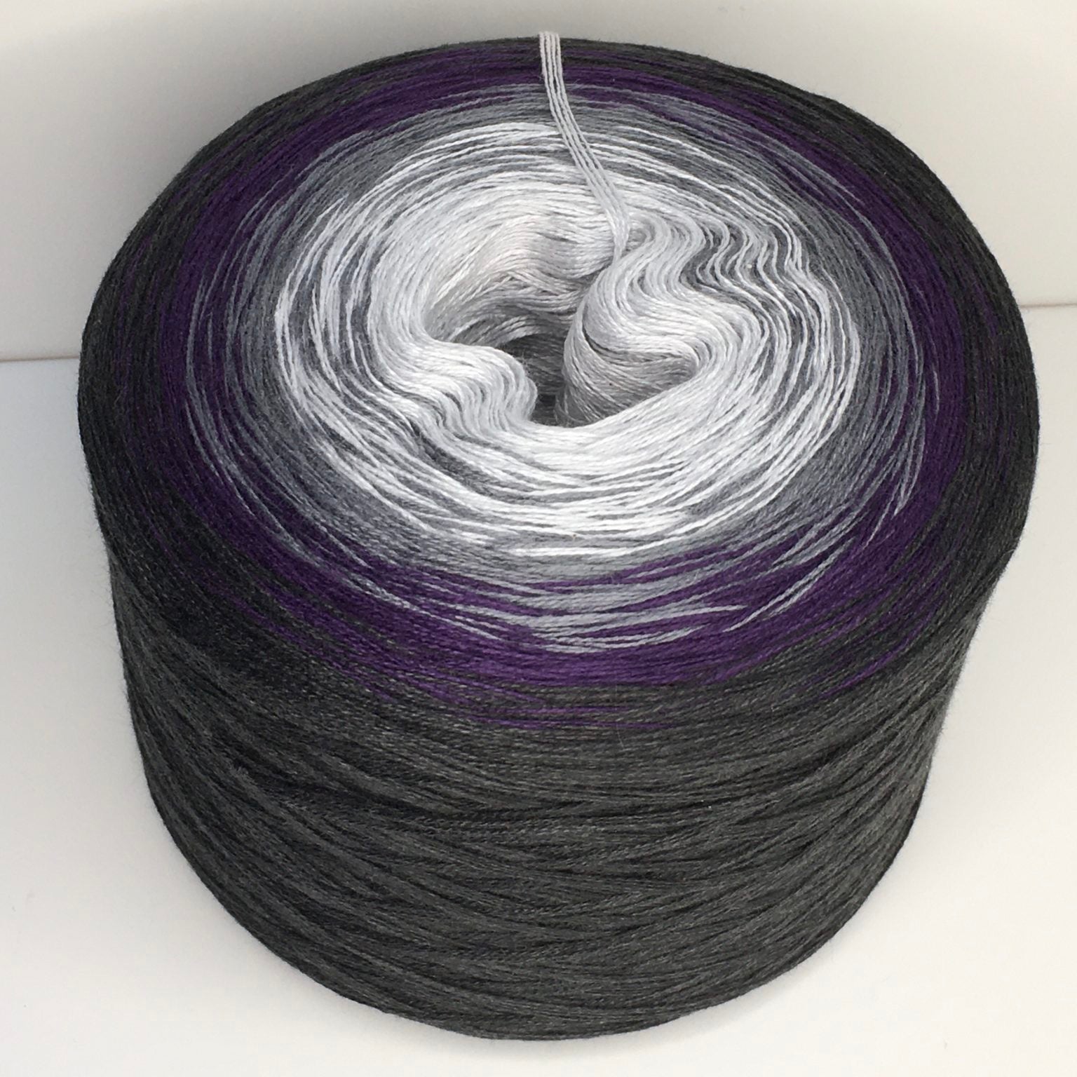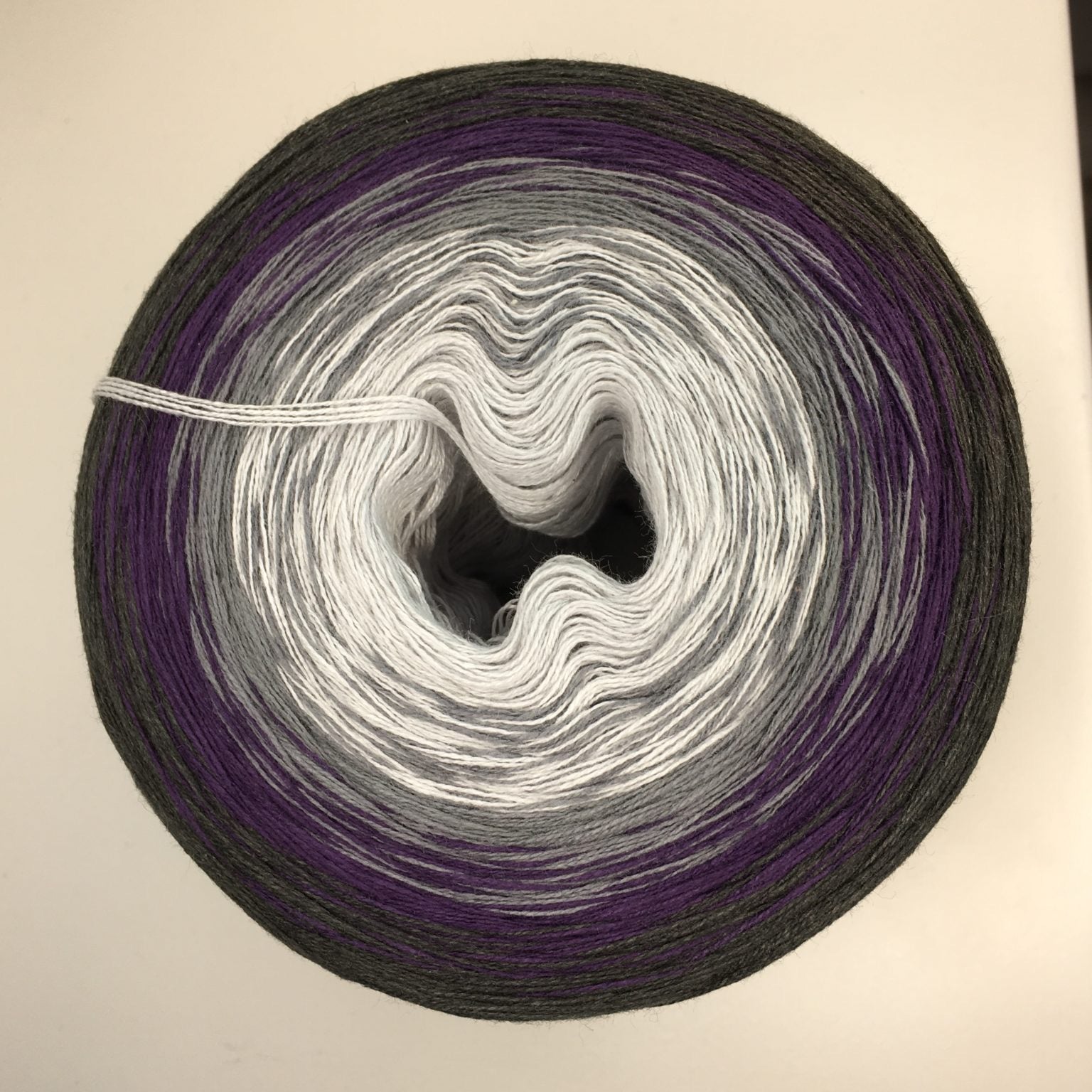 Der Bobbel „Kanani“ fließt edel von Hellgrau über Mittelgrau und Lila bis Anthrazit – ein kraftvoller, harmonischer Verlauf mit urbanem Flair und einem Hauch Mystik.