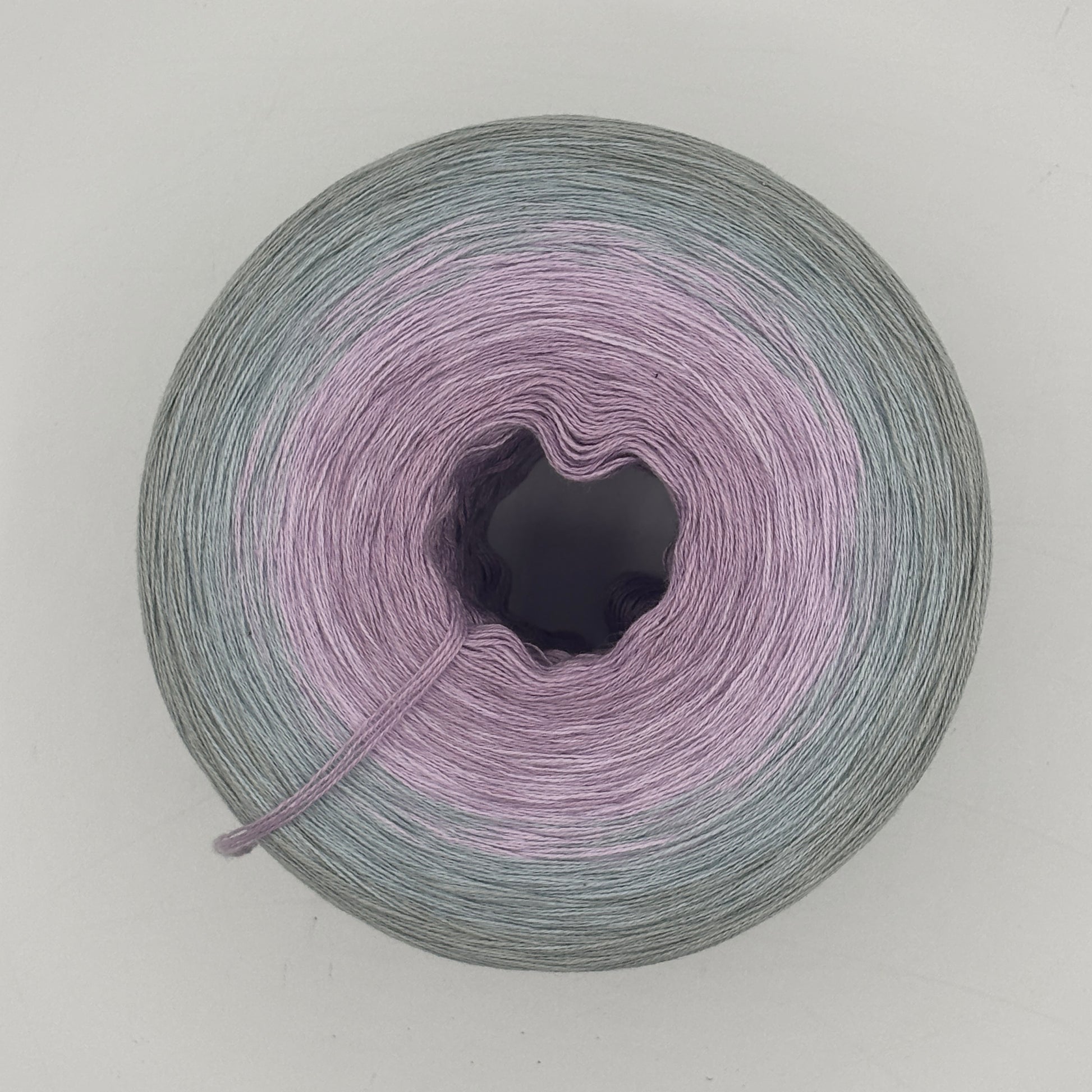 Wie der erste Atemzug eines neuen Tages legt sich „Morgennebel“ sanft über die Sinne. Von Erika über Lavendel und Asche bis hin zu kühlem Stone entfaltet sich ein Farbverlauf, der Ruhe und Harmonie atmet. Jeder Übergang ist weich wie Nebel, der über Felder zieht, und verleiht dem Garn eine fast magische Tiefe.