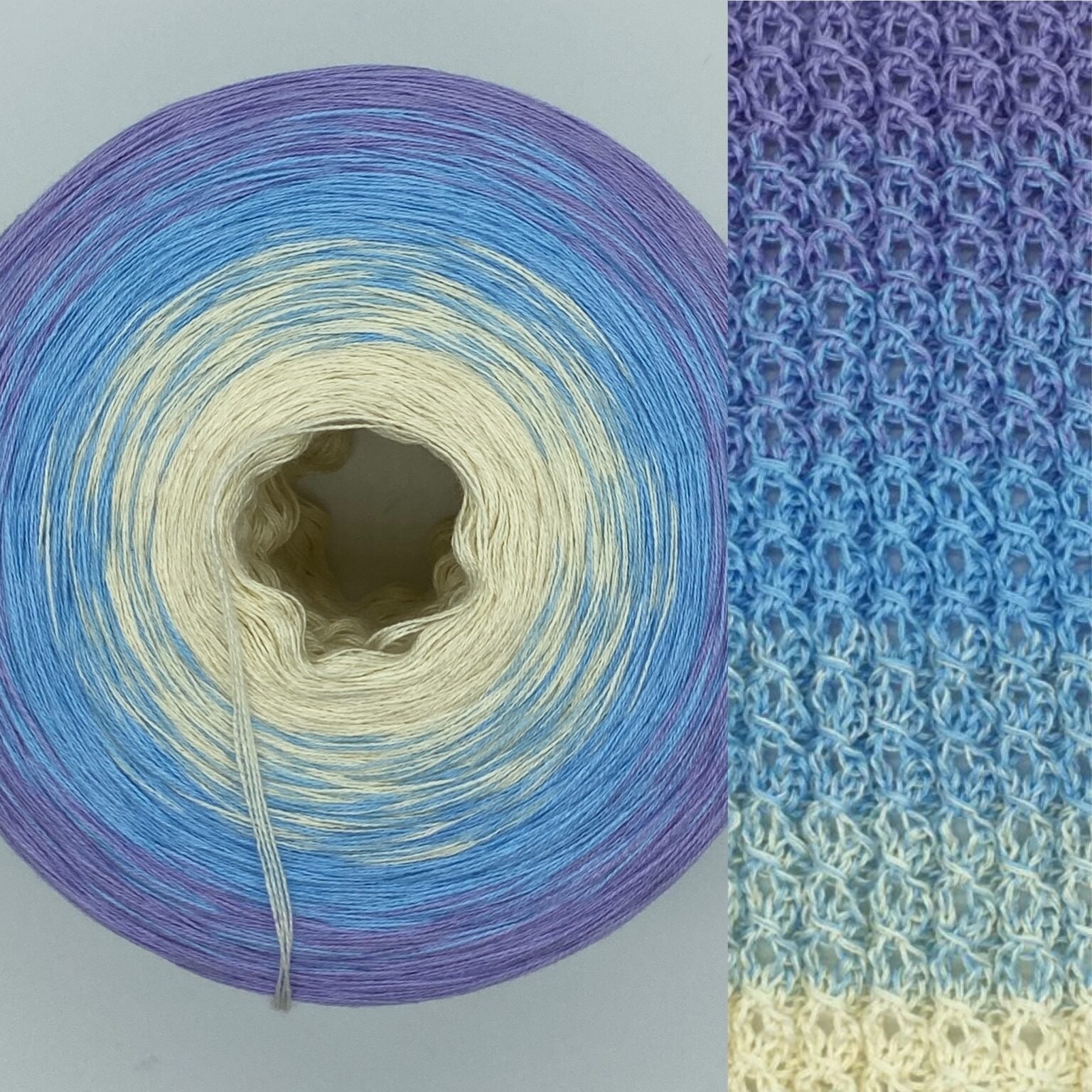 Die parallel liegenden Fäden (nicht verzwirnt) sorgen für ein gleichmäßiges Maschenbild. Farbwechsel erfolgen durch kleine, unauffällige Knoten – für sanfte Übergänge und ein wunderschönes Farbspiel.