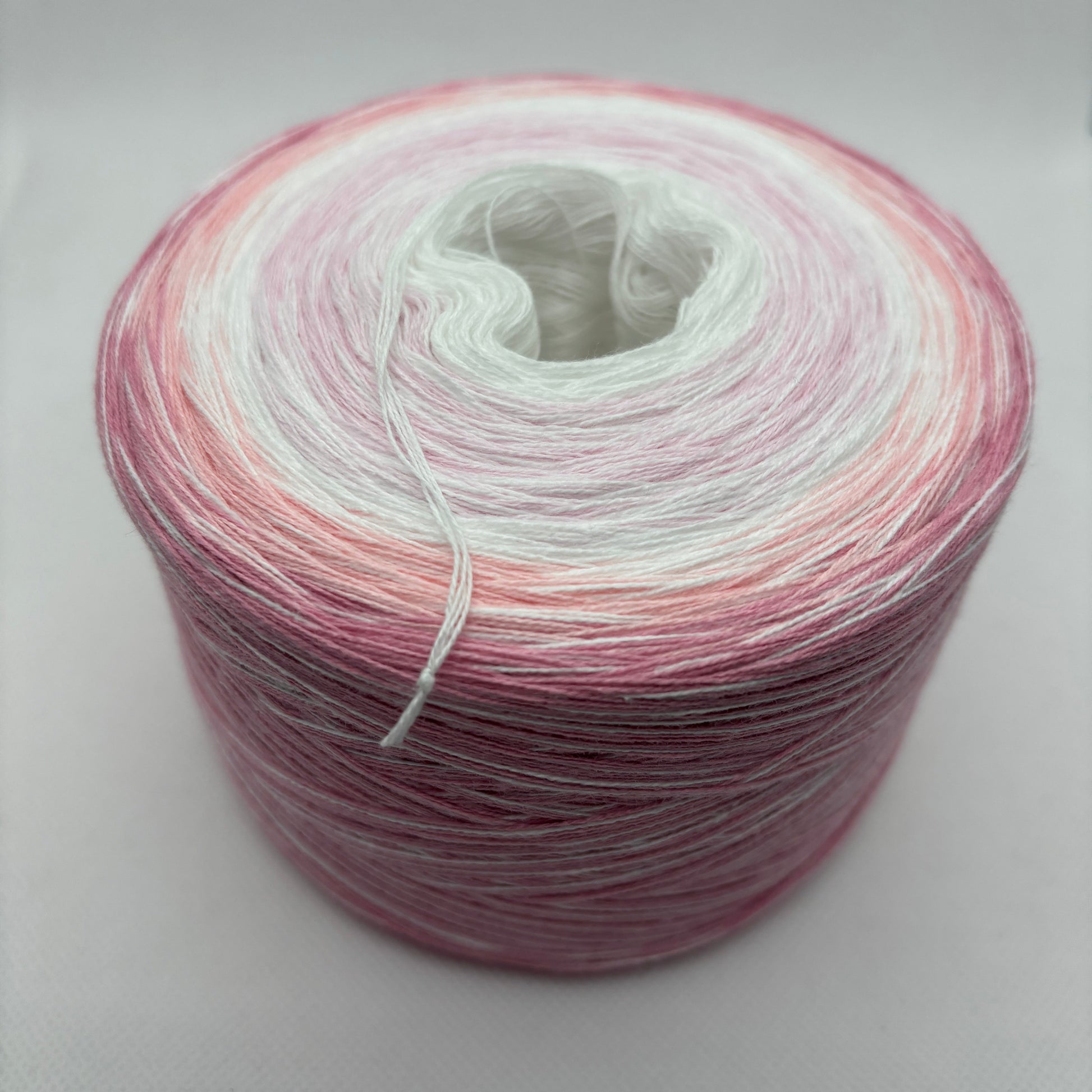 Der Bobbel „Gitti’s Träumchen“ verläuft sanft von Weiß über Baby Rosa, zurück zu Weiß, und geht dann über in Rosé und Anemone – ein zarter, verträumter Farbverlauf, der durch den durchlaufenden Weiß-Faden noch luftiger und harmonischer wirkt. Wie ein süßer Traum, der sich sanft entfaltet.