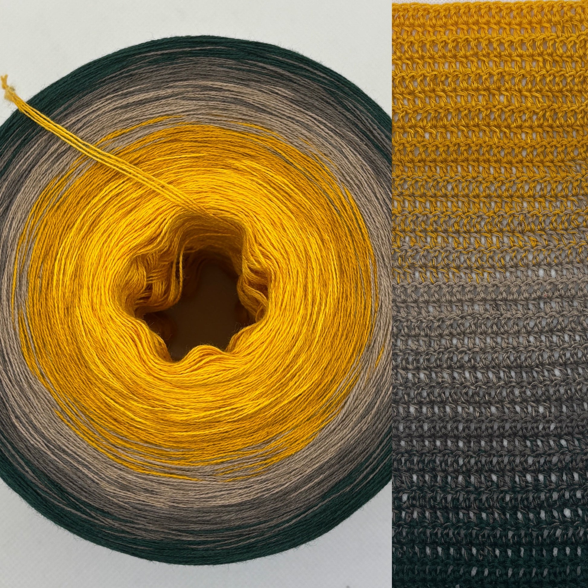 Ein Bobbel wie ein goldener Herbsttag – voller Farbe, voller Wärme, voller Leben. Der Verlauf beginnt mit dem strahlenden Gelb von Kurkuma und Curry, taucht ein in die gedeckten Töne von Schlamm und Taupe, und endet im tiefen, ruhigen Tannengrün.