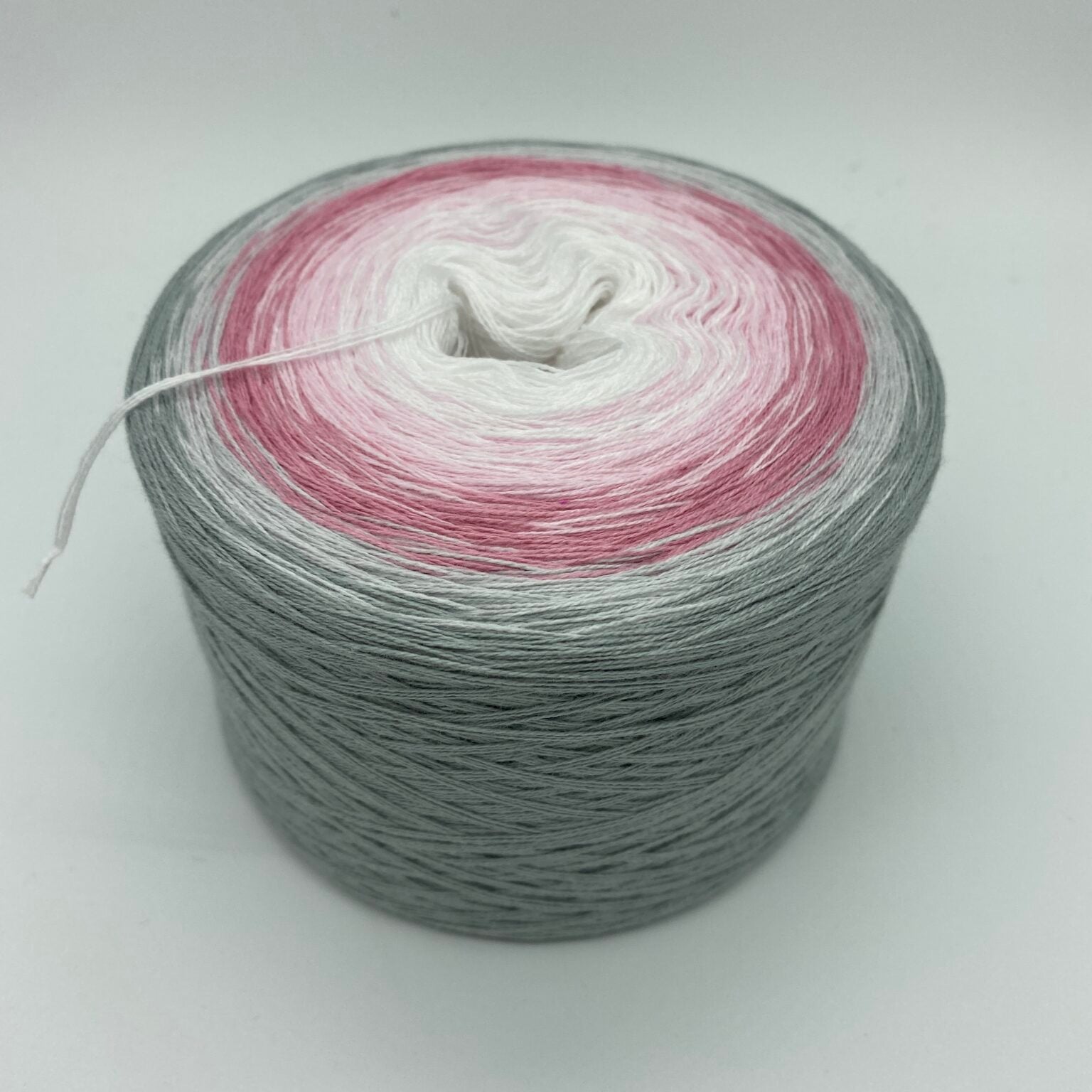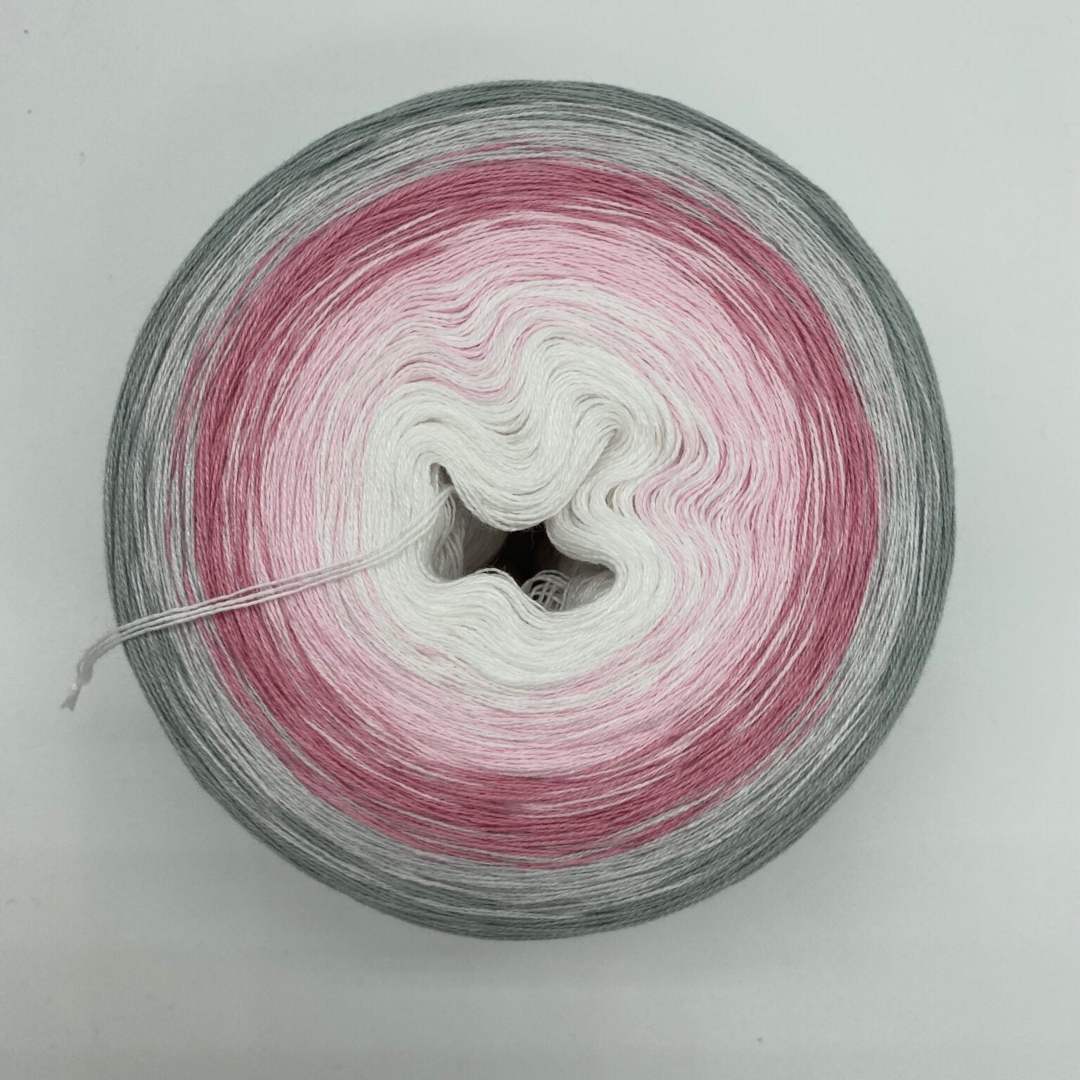 Der Bobbel „Omas Überraschung“ verläuft sanft von Weiß über Baby Rosa, Anemone und Hellgrau bis hin zu Stone – ein nostalgischer Mix, der an Geborgenheit und warme Erinnerungen erinnert.