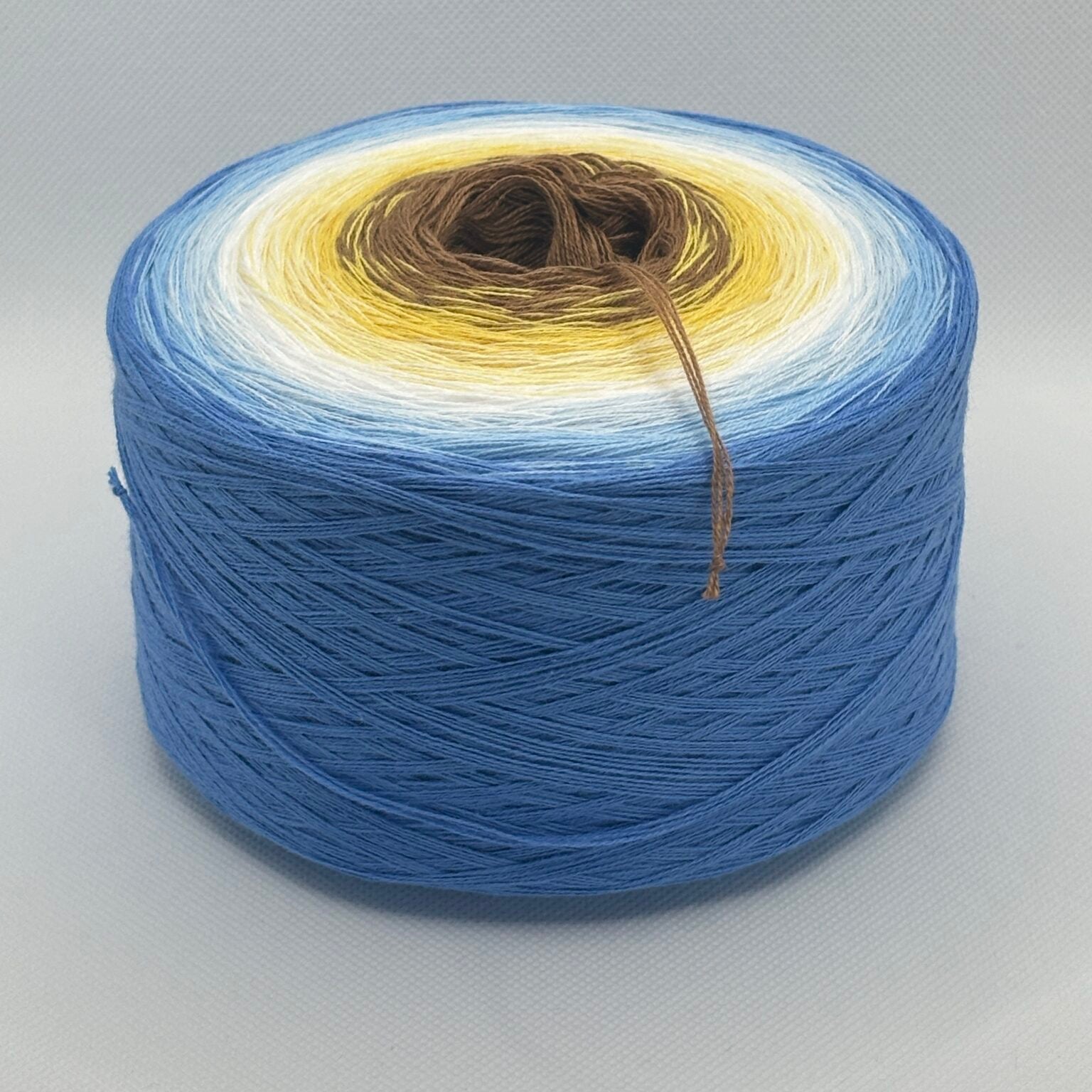 Der Bobbel „Flachs“ verläuft in einem sanften Farbverlauf von Mocca, Gold, Vanille, Weiß, Hellblau, Aqua und Ciel – wie ein sonniger Tag über reifen Feldern, durchzogen von leichtem Wind und weitem Himmel. Diese sanften, aber natürlichen Farben verleihen deinem Projekt eine einzigartige Ausstrahlung, die sowohl geerdet als auch leicht wirkt.
