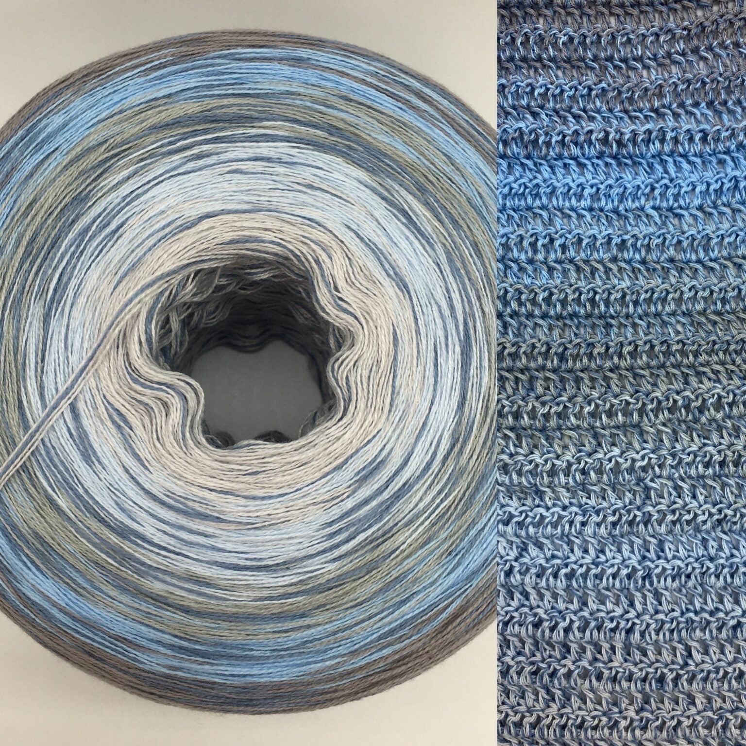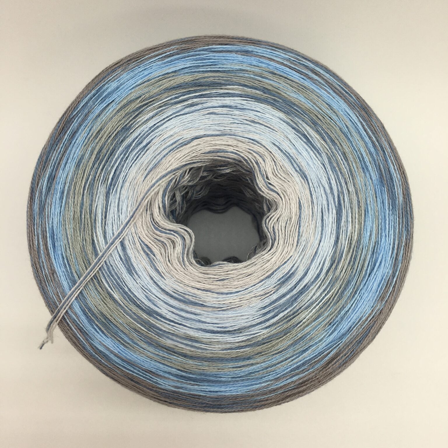 Der Bobbel „Heavenly Sea Light“ aus der Serie „Sea“ verläuft in einem sanften Farbverlauf von Hellgrau, Hellblau, Stone, Aqua und Zinn, durchzogen von einem durchgehenden Faden in Taubenblau – wie der Blick in einen weiten Himmel über ruhigem Wasser, klar, friedlich und voller Licht. Diese frischen, aber natürlichen Farben verleihen deinem Projekt eine einzigartige Ausstrahlung, die sowohl beruhigend als auch erhaben wirkt.