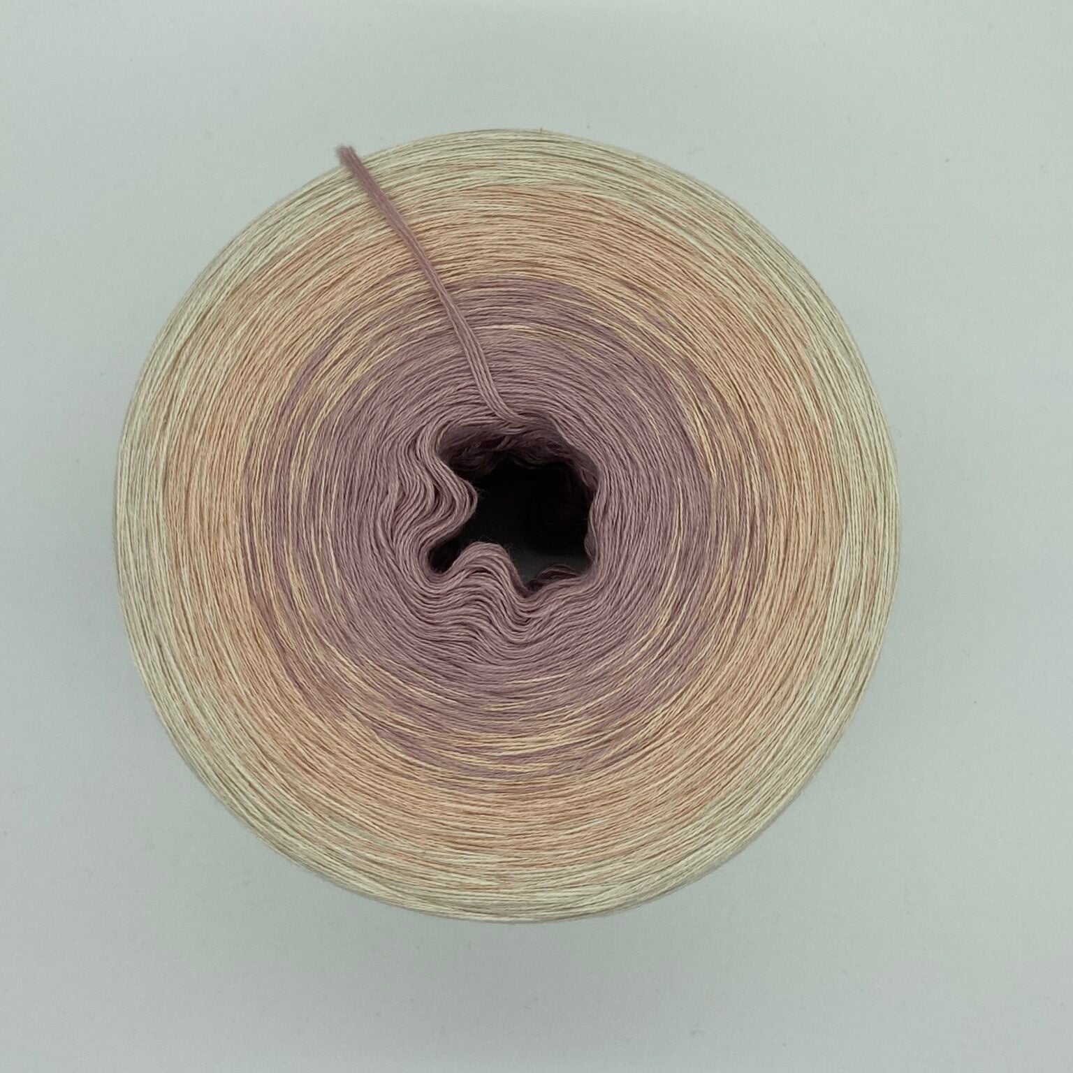 Der Bobbel „Blush“ verläuft in einem sanften Farbverlauf von Flieder, Peach und Muschel – wie ein Hauch Rouge auf frischer Haut, weich und schmeichelnd wie ein zarter Sonnenaufgang. Diese sanften, aber natürlichen Farben verleihen deinem Projekt eine einzigartige Ausstrahlung, die sowohl romantisch als auch edel wirkt.