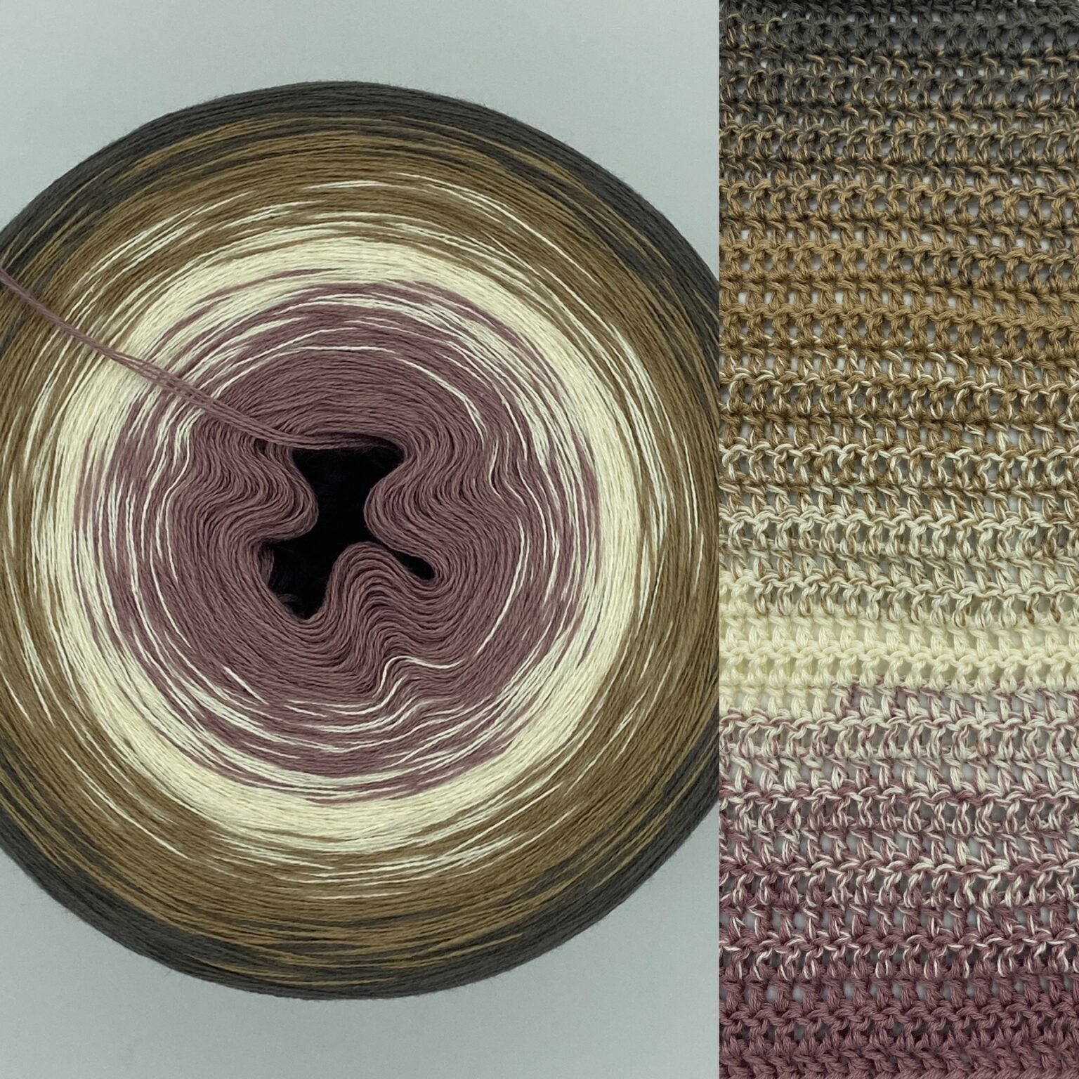 Die parallel liegenden Fäden (nicht verzwirnt) sorgen für ein gleichmäßiges Maschenbild. Farbwechsel erfolgen durch kleine, unauffällige Knoten – für sanfte Übergänge und ein wunderschönes Farbspiel.