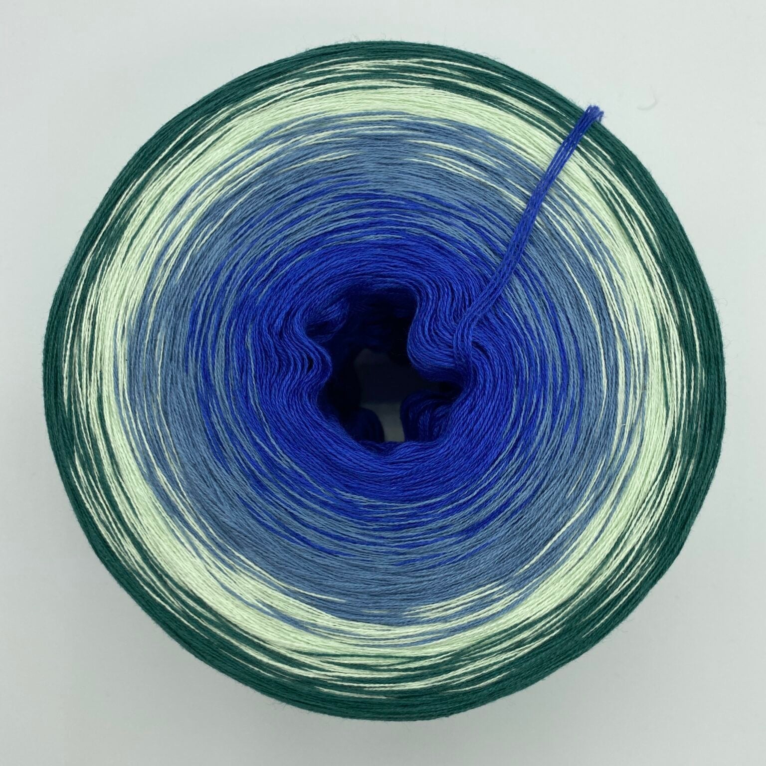 Der Bobbel „Sophias Traum“ verläuft in einem bezaubernden Farbverlauf von Lapis, Taubenblau, Erbse und Smaragd – wie der geheimnisvolle, traumhafte Farbenspiel einer fantastischen Welt. Diese lebendigen Farben verleihen deinem Projekt eine mystische, fast magische Ausstrahlung, die an einen verträumten Ort erinnert, an dem die Farben des Himmels und der Erde miteinander verschmelzen.