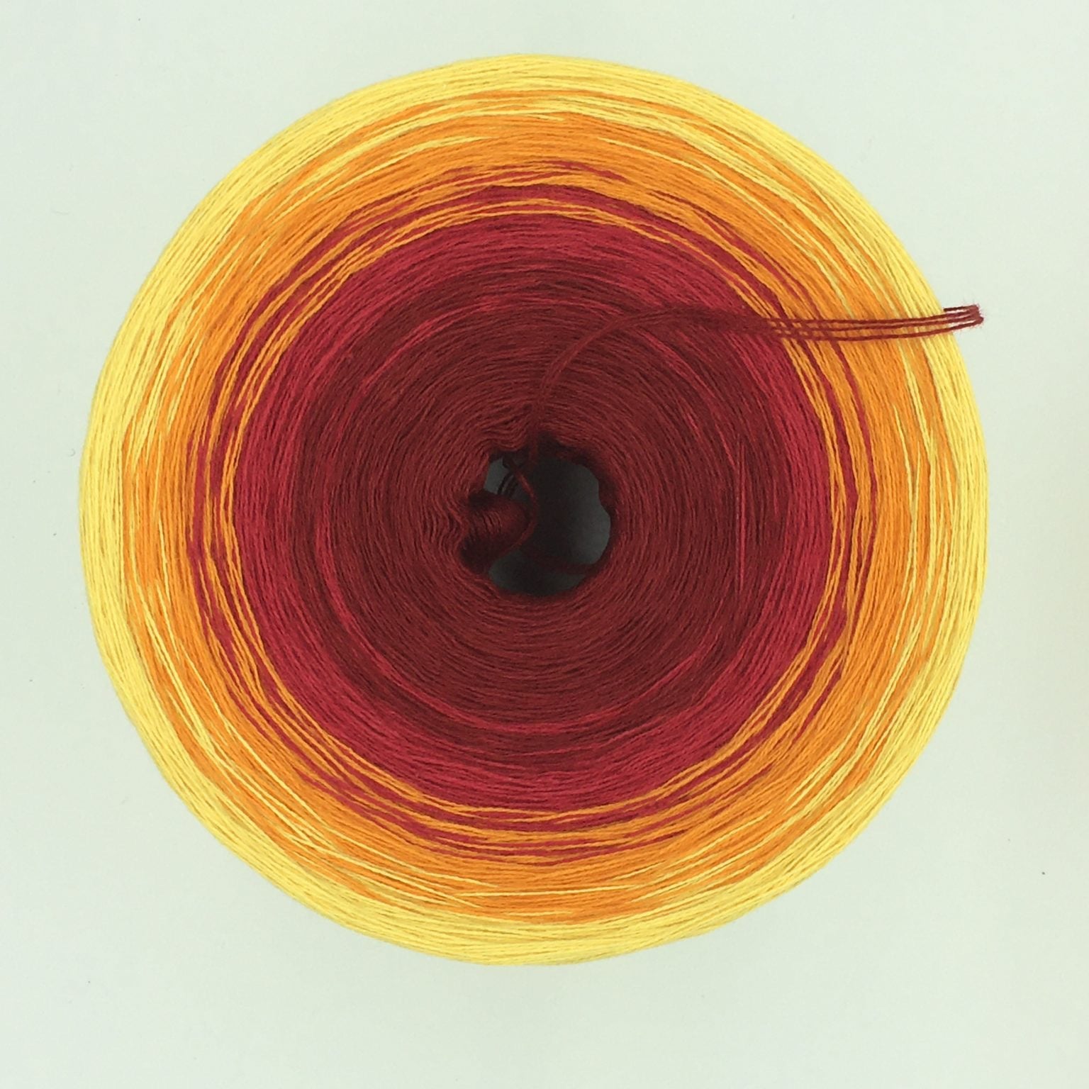 Die parallel liegenden Fäden (nicht verzwirnt) sorgen für ein gleichmäßiges Maschenbild. Farbwechsel erfolgen durch kleine, unauffällige Knoten – für sanfte Übergänge und ein wunderschönes Farbspiel.