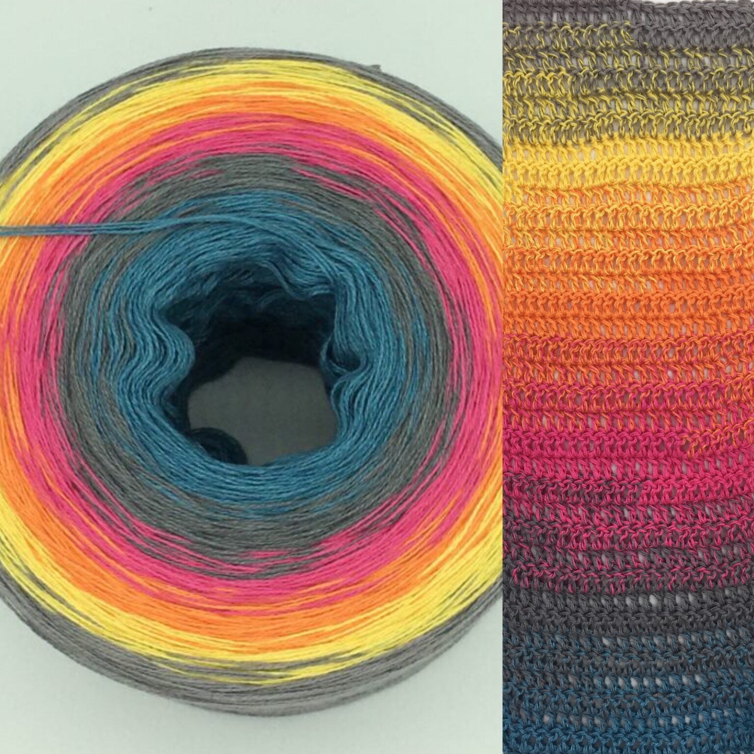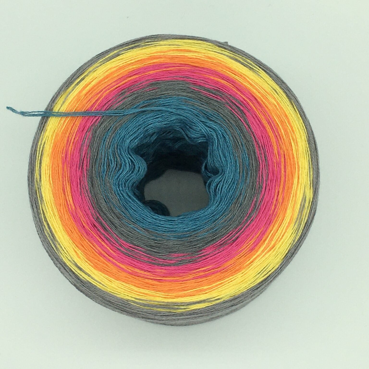 Der Bobbel „Hippie“ verläuft in einem lebendigen Farbverlauf von Hellpetrol, Mittelgrau, Fuchsia, Mango, Gold und Zinn – wie eine Explosion bunter Farben aus den wilden 70er Jahren, die die Freiheit und das kreative Flair der Hippie-Bewegung widerspiegeln. Diese kraftvollen Farben verleihen deinem Projekt eine fröhliche, unkonventionelle Ausstrahlung, die an die Leichtigkeit und den Spirit dieser bunten Ära erinnert.