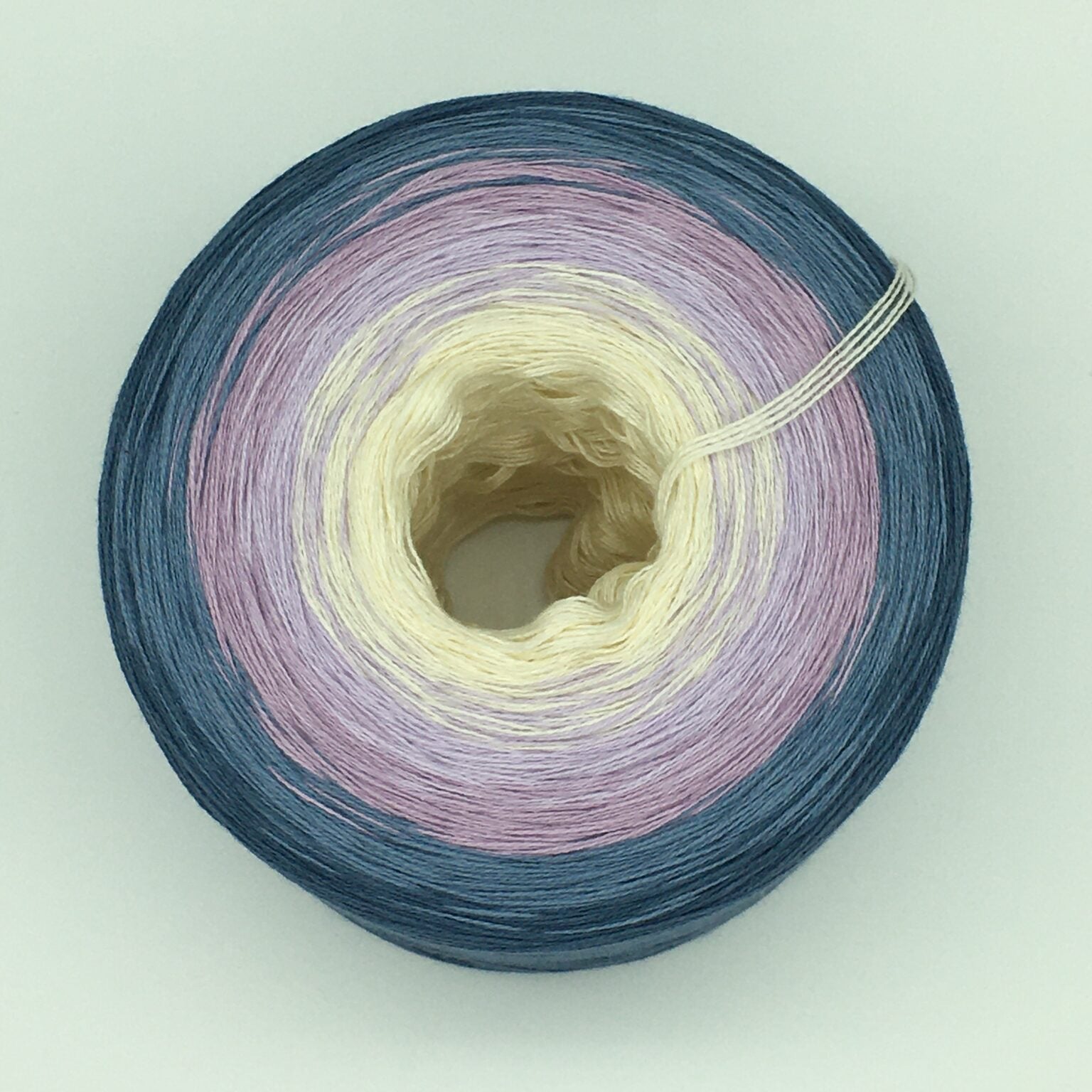 Der Bobbel „Wintermorgen“ beginnt hell und ruhig in Creme, gleitet über Lavendel und Erika ins kühle Taubenblauund endet in tiefem Preußischblau – ein harmonischer Farbverlauf wie ein klarer Morgen im Winter, wenn der Tag noch leise ist und der Himmel in Pastell getaucht.