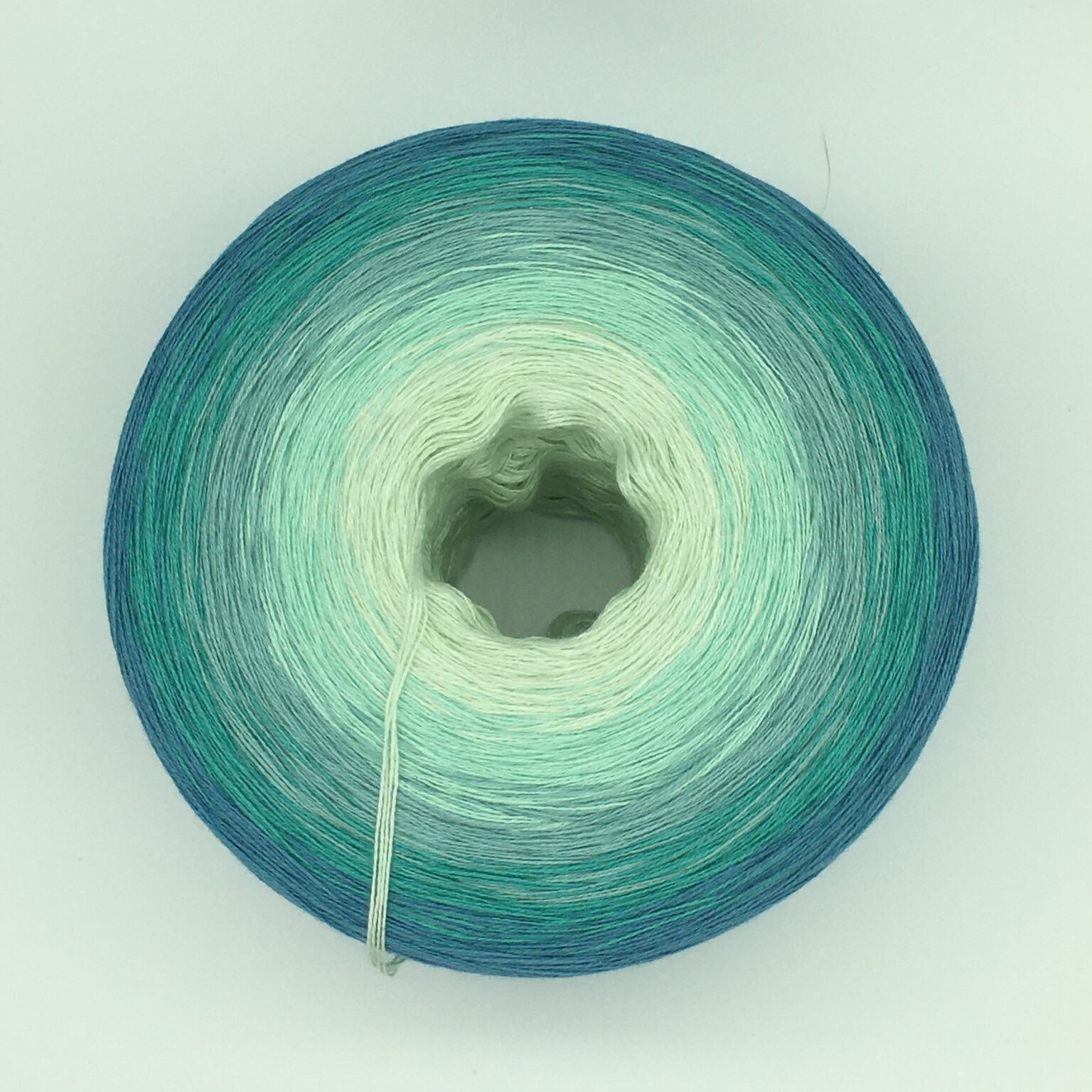 Der Bobbel „Cold Water“ fließt von Erbse über Pistazie, Jade und Opal bis hin zu Hellpetrol – ein kühler, natürlicher Farbverlauf wie das Glitzern von Sonnenstrahlen auf klarem Wasser. Belebend, ruhig und gleichzeitig voller Energie.
