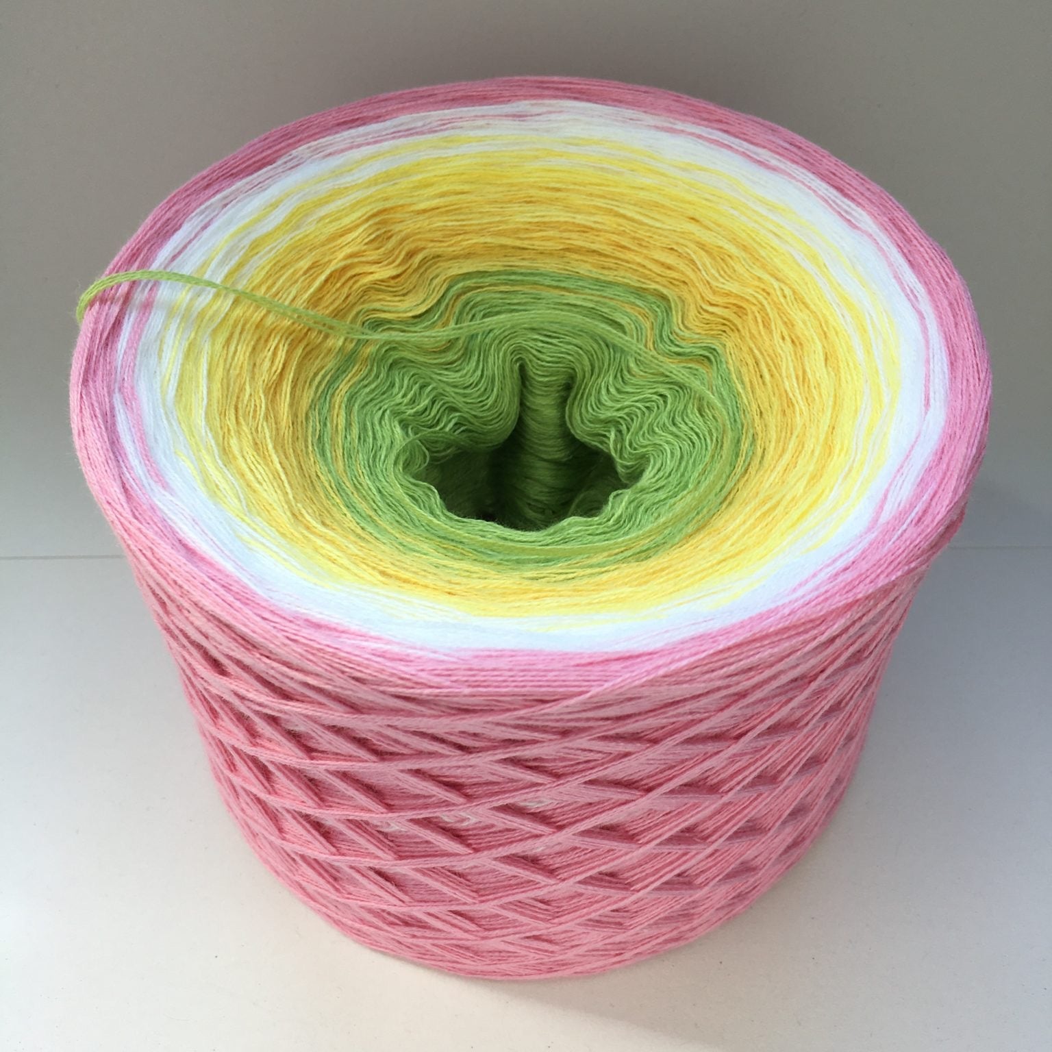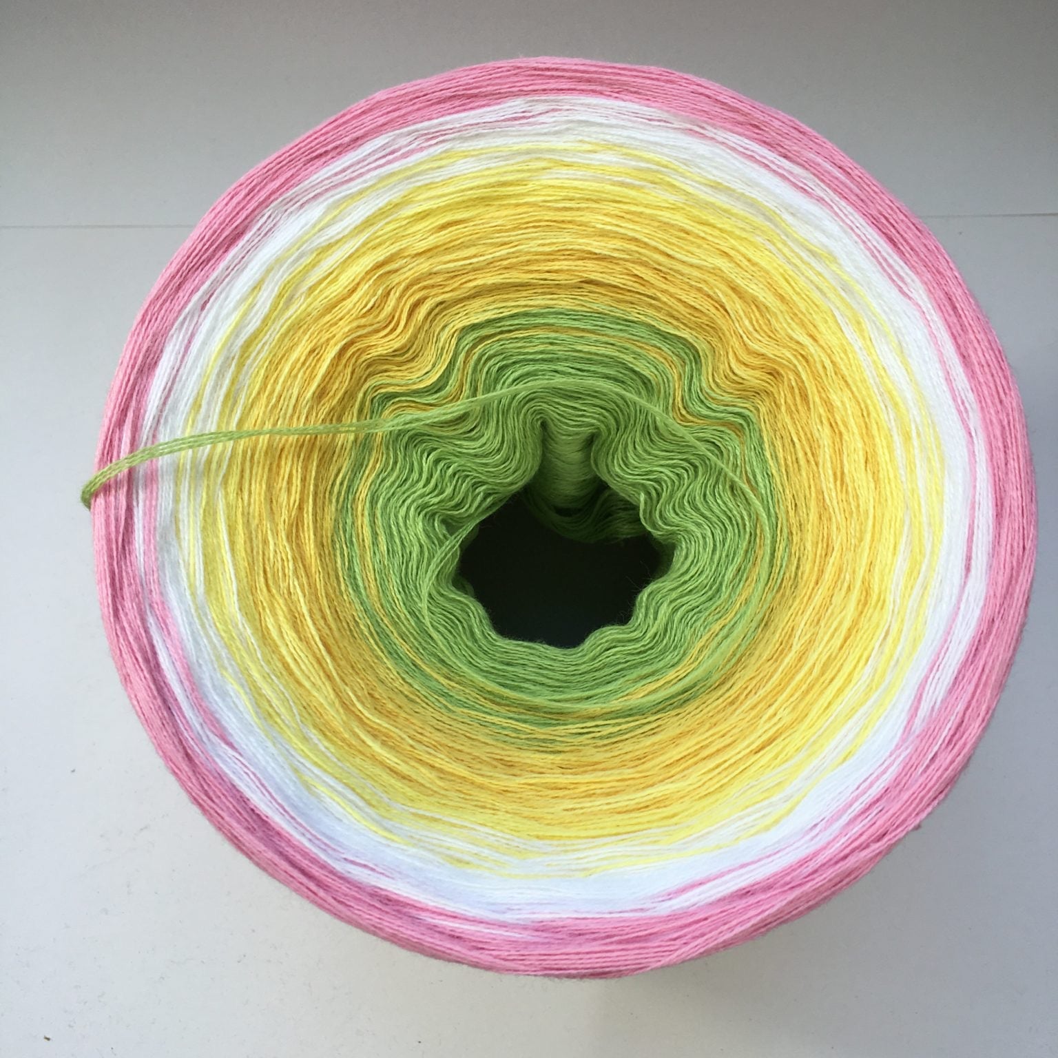 Der Bobbel „Gänseblümchen“ blüht von Blattgrün über Gold, Jalousie, Weiß bis hin zu einem zarten Rosa – ein heiterer Farbverlauf wie eine blühende Wiese im Sonnenschein. Natürlich, freundlich und einfach herzerwärmend.