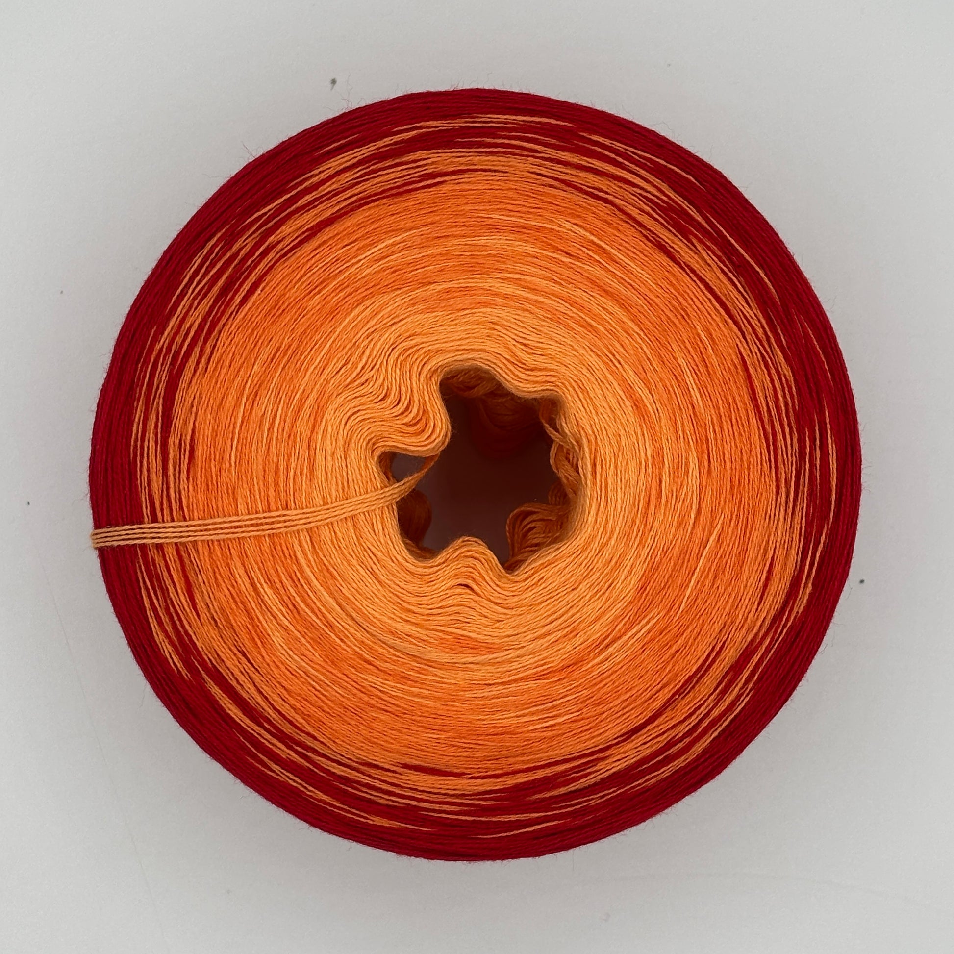 Die parallel liegenden Fäden (nicht verzwirnt) sorgen für ein gleichmäßiges Maschenbild. Farbwechsel erfolgen durch kleine, unauffällige Knoten – für sanfte Übergänge und ein wunderschönes Farbspiel.