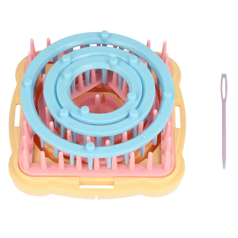 Dieses Set besteht aus 6 Teilen in verschiedenen Formen und Größen für das Fertigen von Blumen oder anderen Figuren aus Band, Bast, Stoffstreifen, Stickgarn oder diversen Strickgarnen. Die Looms sind aus Kunststoff hergestellt. Die 3 runden, blauen Ringe haben einen Durchmesser von 3,2cm, 5,0cm und 7,2cm. Die viereckigen rosa Looms sind 3 x 3cm und 7,5 x 7,5cm groß. Der sechseckige rosa Loom hat einen Durchmesser von 6cm. Das Set wird einschließlich Kunststoff-Stopfnadel geliefert.