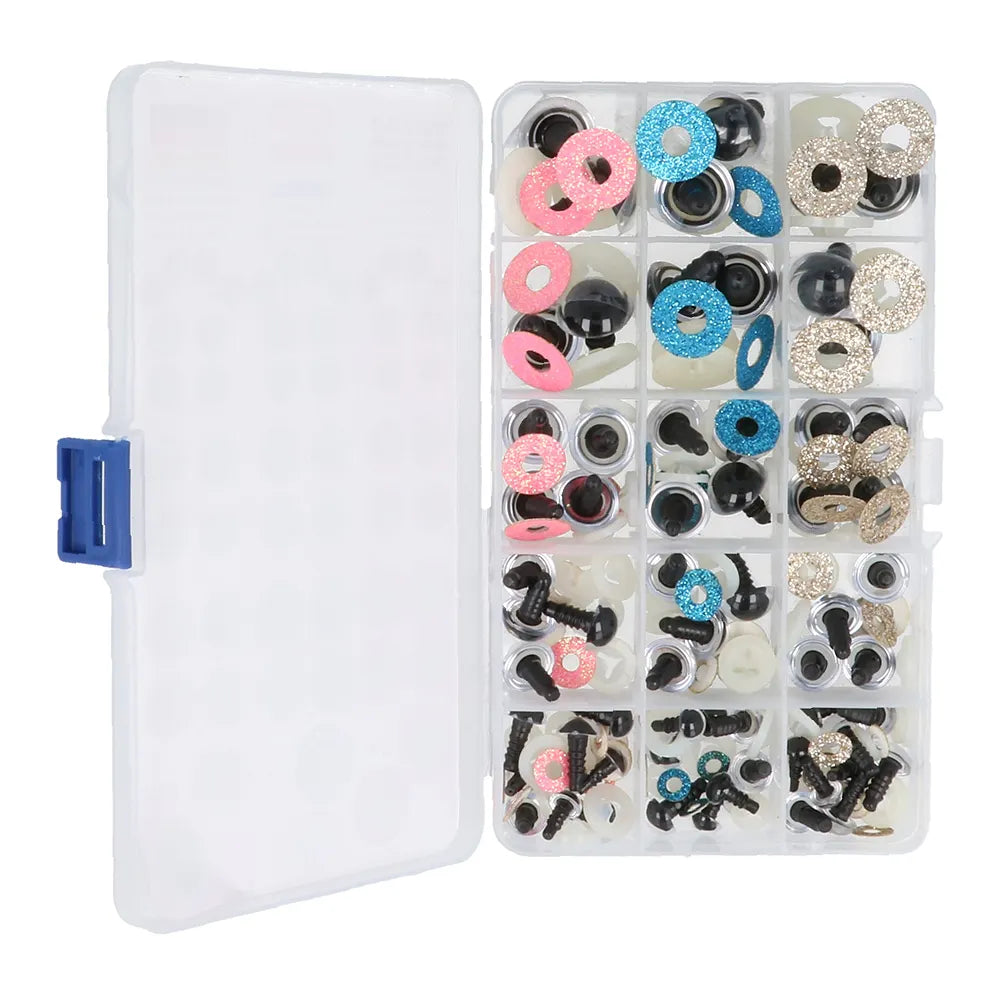 Verleihen Sie selbst gemachten Puppen, Stofftieren und Amigurumi einen eigenen Charakter – mit diesen funkelnden Tieraugen von Opry. Die Augen haben eine runde, schwarze Pupille, und die farbige Iris erhält dank der Glitzerscheibe, die hinter dem Auge liegt, ein fröhliches Funkeln. Zur Befestigung der Sicherheitsaugen wird das Schraubgewinde durch den Stoff oder die Maschen gesteckt und an der Innenseite des Kuscheltiers mit dem Schließring fixiert. Die Kunststoff-Augen haben einen Durchmesser von 8, 10, 12, 15 und 18mm. Erhältlich in drei verschiedenen und sehr preisgünstigen Sortimenten aus Augen in 3 verschiedenen Farben und 4 Augen pro Größe (insgesamt also 60!) in praktischer Sortierbox.