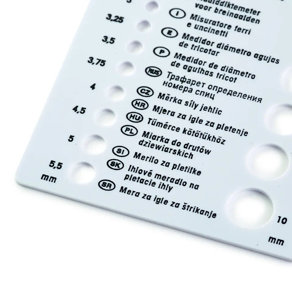 Präzise Messung: Mit 19 Löchern in den gängigsten Durchmessern, die alle Stricknadelstärken zwischen 2 mm und 10 mm abdecken