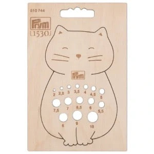 Wer häufig und gerne strickt, kennt das Problem: Stricknadeln in unterschiedlichen Größen und Stärken sammeln sich an, und beim Aufräumen und Sortieren der Wolle kann es schwierig sein, die richtige Nadelstärke zu finden. Das Prym Nadelmaß in Katzenform bietet die ideale Lösung! Hergestellt aus nachhaltigem Birkenholz, hilft dieses praktische Zubehör bei der genauen Bestimmung der Stricknadelstärke und fügt sich mit seinem niedlichen Design perfekt in deine Strickutensilien ein.